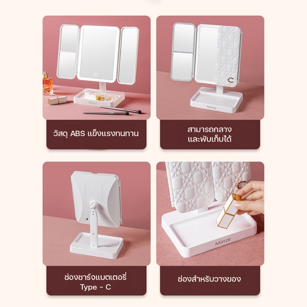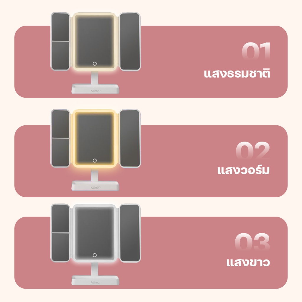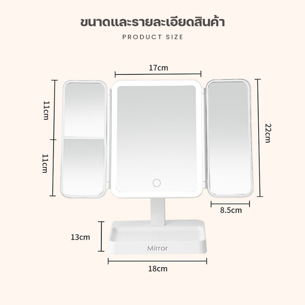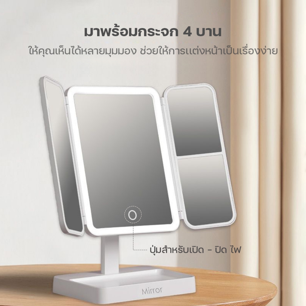 Shimanto กระจกเครื่องสำอาง กระจกพกพาและ ถาดเก็บของ ไฟปรับความสว่างและหมุนปรับองศาได้ ปุ่ม เปิด-ปิดแบบสัมผัส