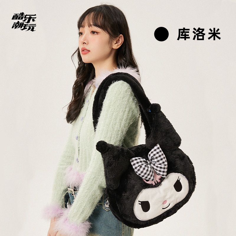 กระเป๋าสะพายไหล่ กระเป๋าถือ ผ้ากํามะหยี่ขนนิ่ม ลายตุ๊กตา Kuromi Melody สําหรับสตรี