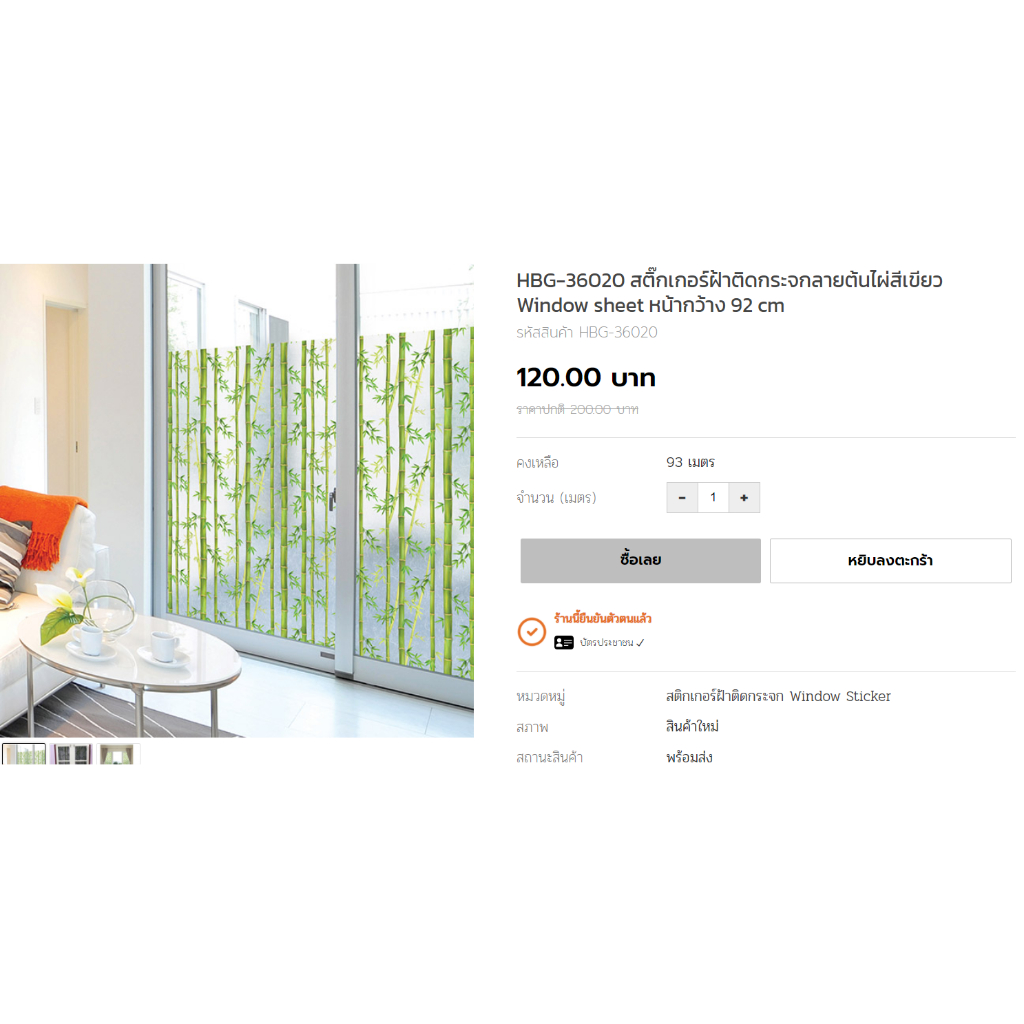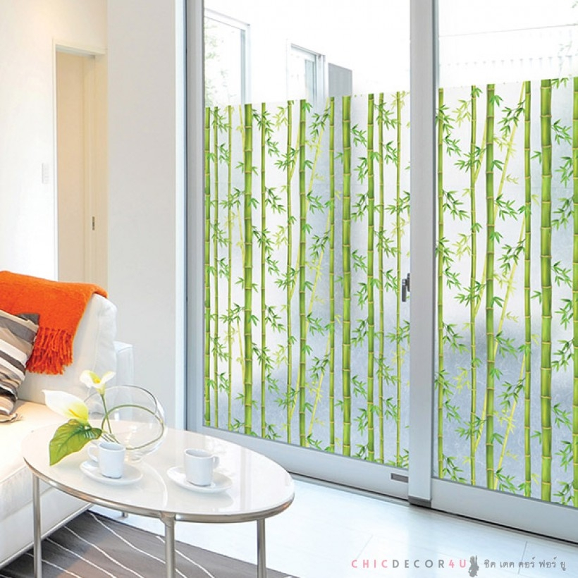 สติ๊กเกอร์ฝ้าติดกระจก ลายไผ่เขียว HBG-36020 กว้าง 92ซม