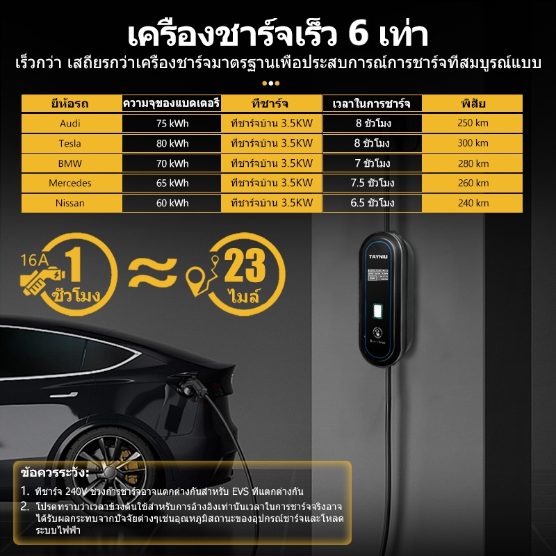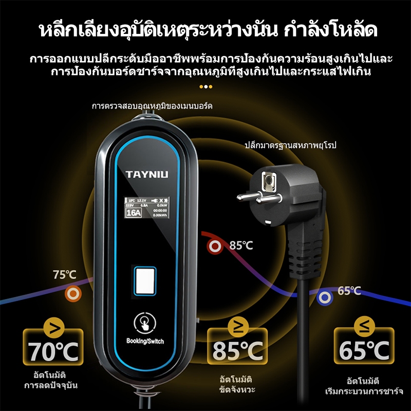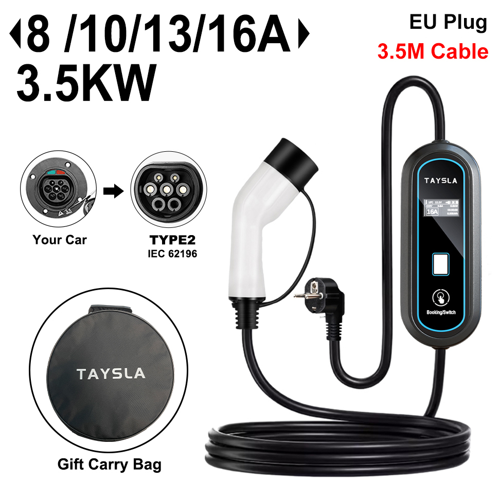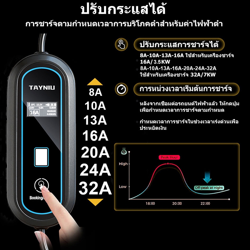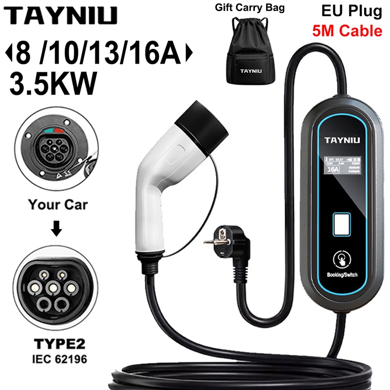 TAYNIU Type2 16A 3.5KW เครื่องชาร์จ EV แบบพกพา รองรับการควบคุมผ่าน WiFi APP พร้อมฟังก์ชั่นปรับกระแสไฟฟ้าและระบบป้องกันหลายระบบ