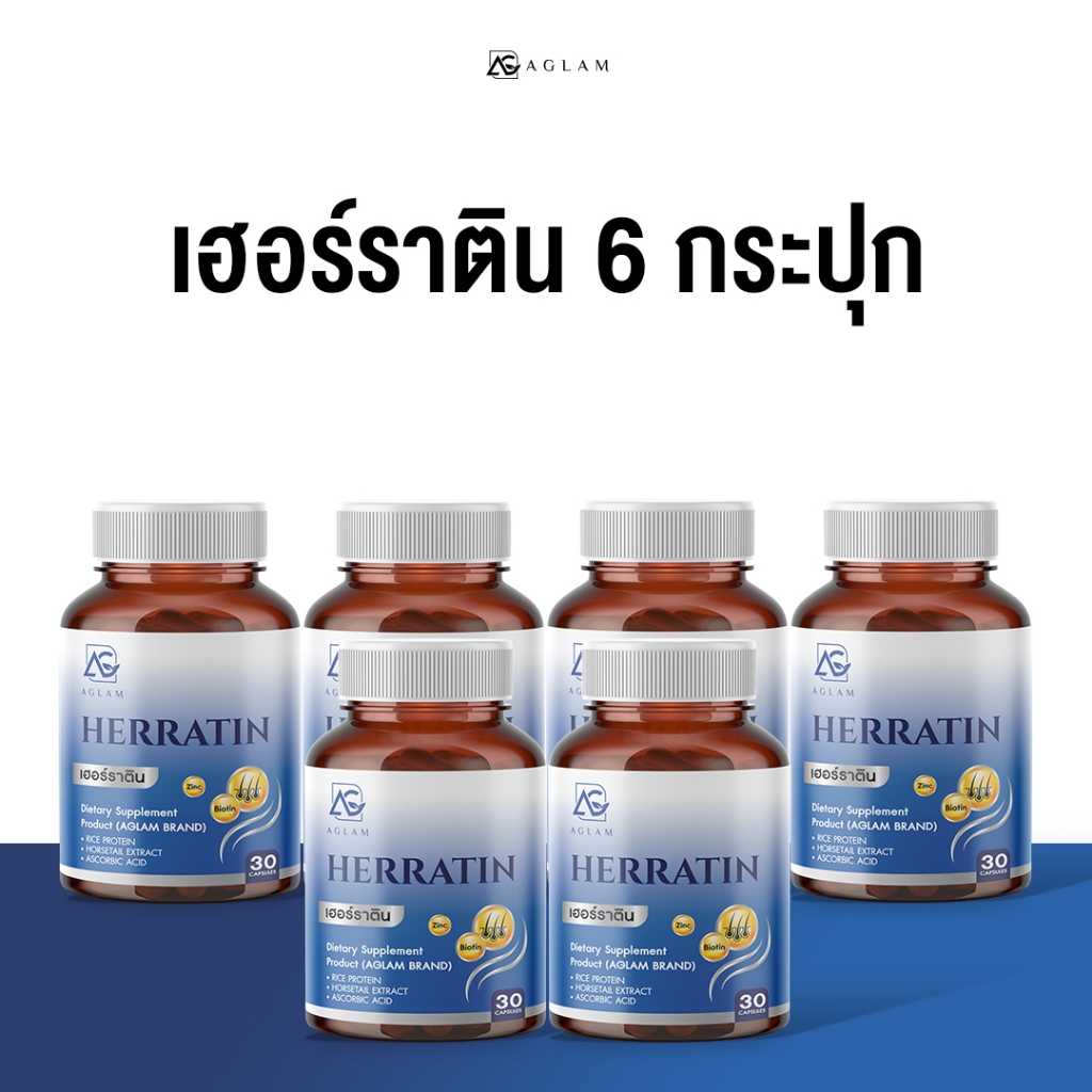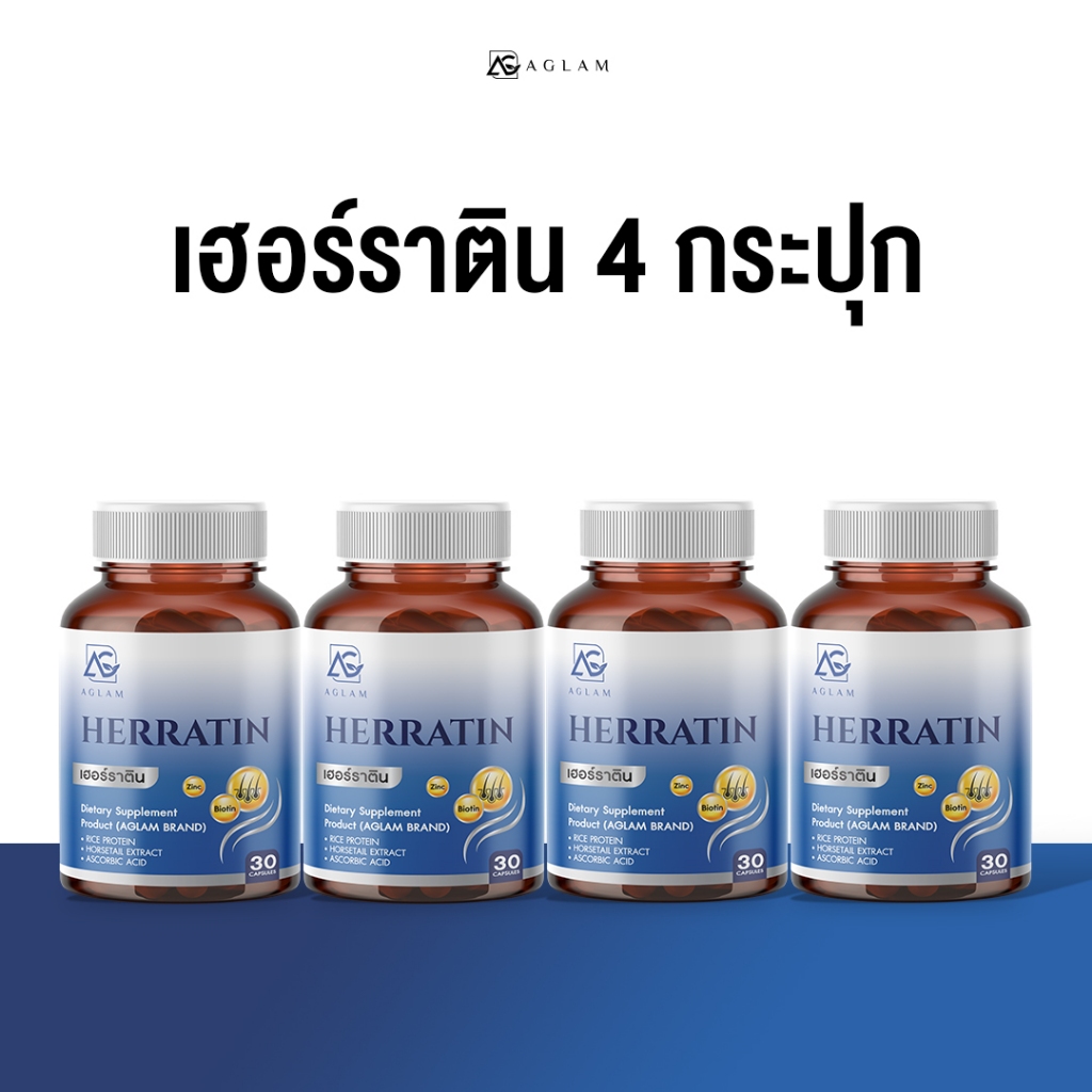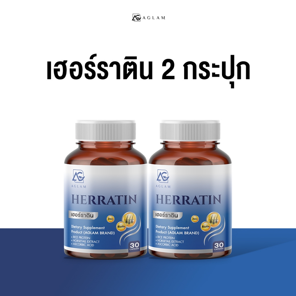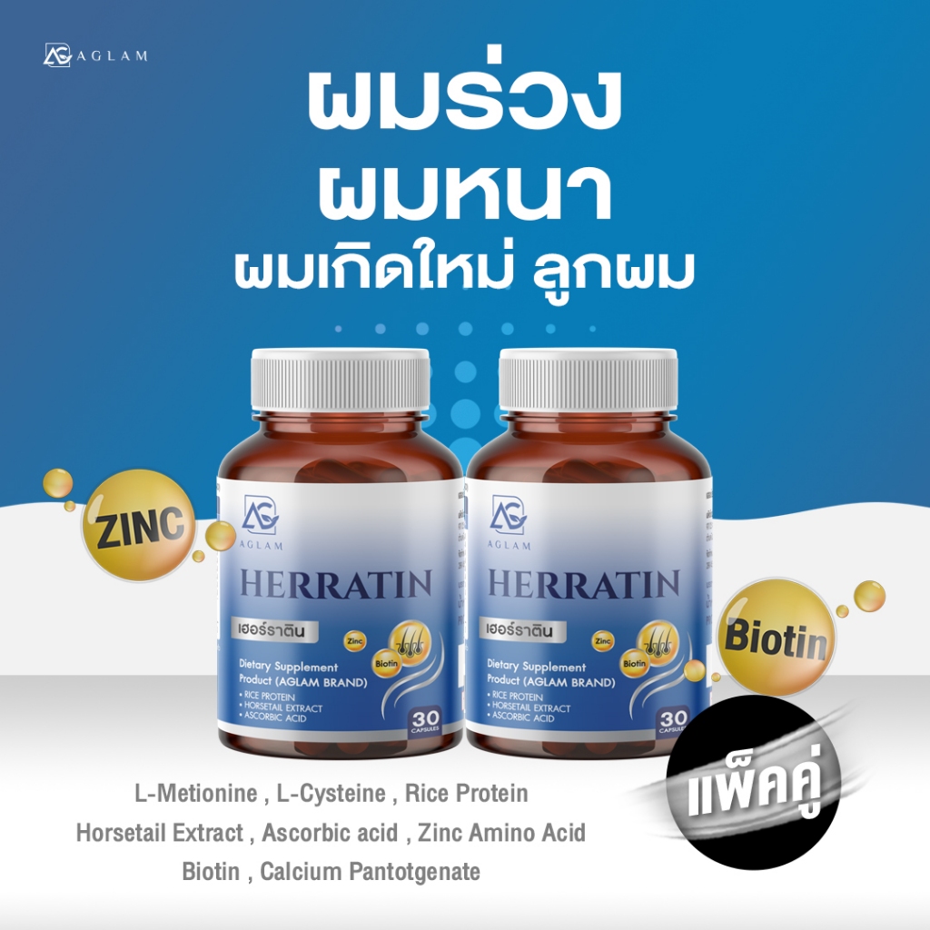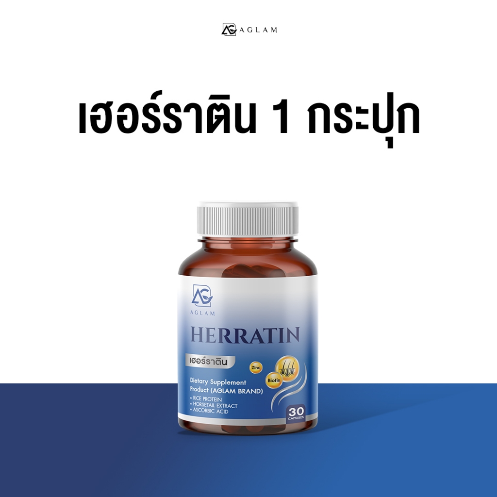 AGLAM เฮอร์ราติน - มีหญ้าหางม้า ซิงค์ ไบโอติน โปรตีนข้าว อัดแน่นเม็ด 1,000 มก. บรรจุ 30 แคปซูล