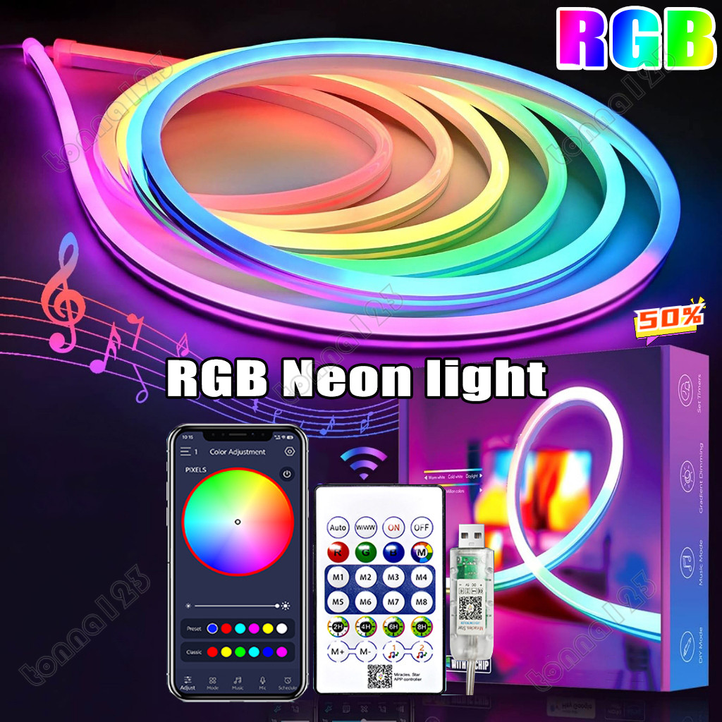 5v RGB Neon Strip Light 1M 2M 3M 4M 5M USB กันน้ํายืดหยุ่นริบบิ้นเทปนีออนไฟบลูทูธรีโมทคอนโทรลสําหรับตกแต่งบ้าน