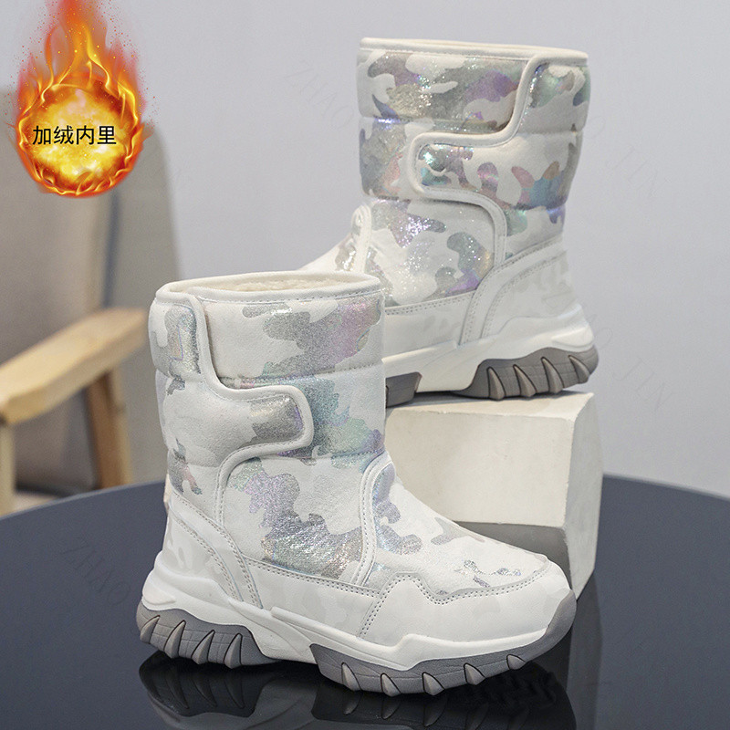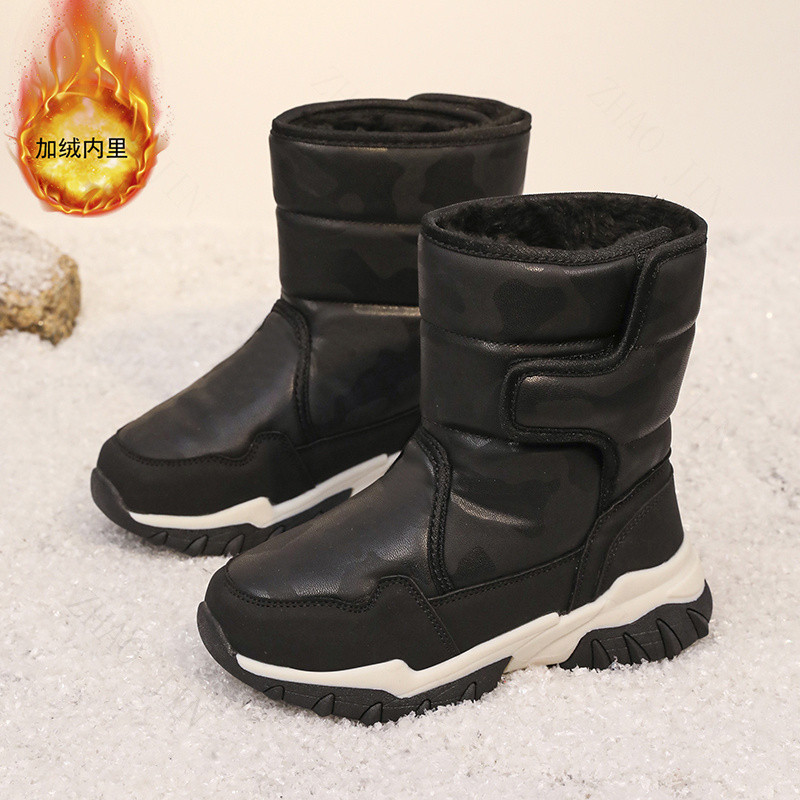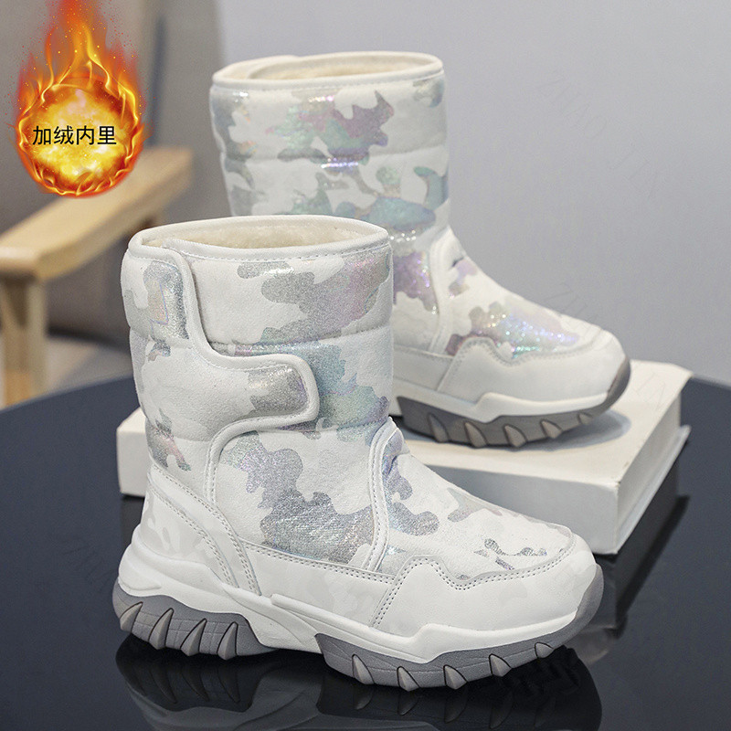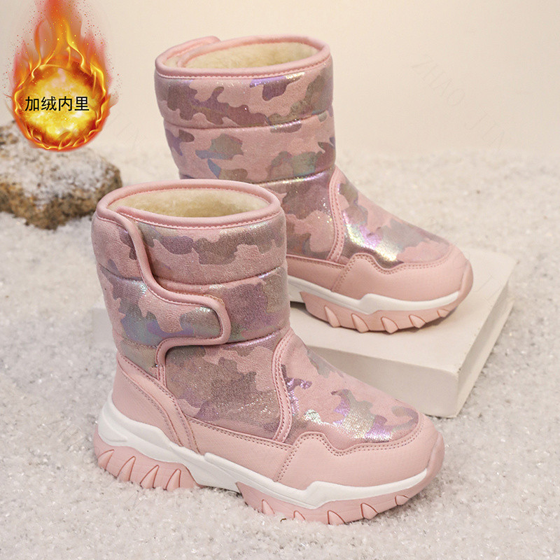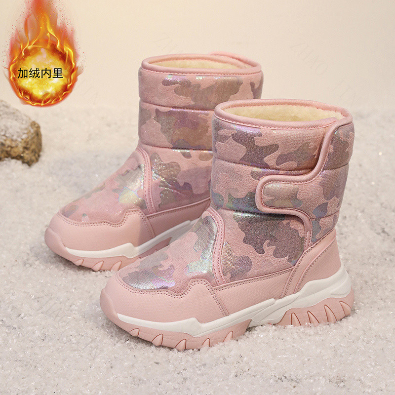 กีฬากลางแจ้งฤดูหนาวหิมะรองเท้าเด็กรองเท้าผ้าฝ้ายรองเท้ากันลื่นกันน้ํากลางหลอดรองเท้า จูจิน