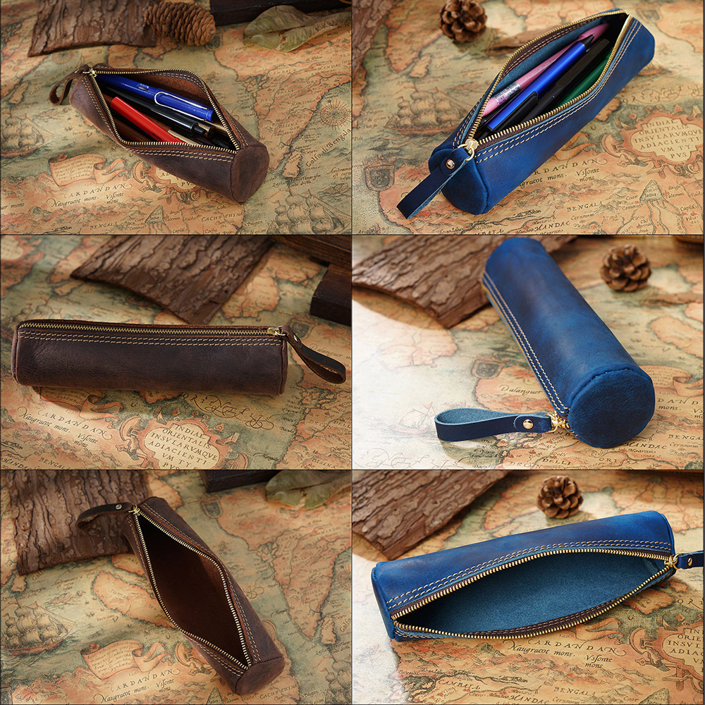 แฮนด์เมดหนังเครื่องเขียนถุงเก็บปากกาดินสอบอลปากกาลงนามปากกากระเป๋านักเรียนสอบเครื่องเขียนซิปถุงเก็บ