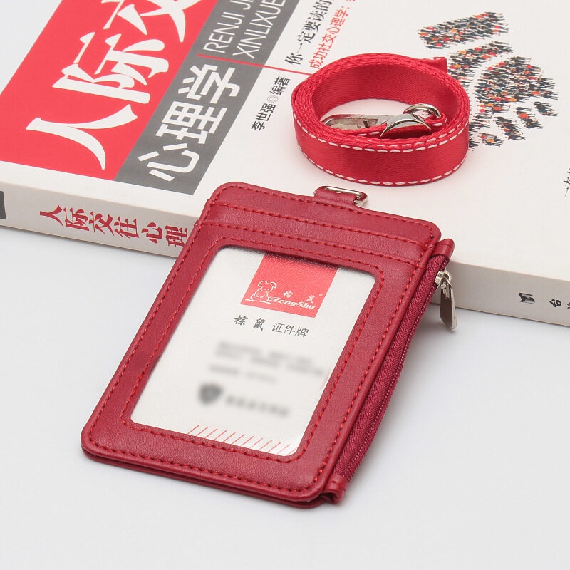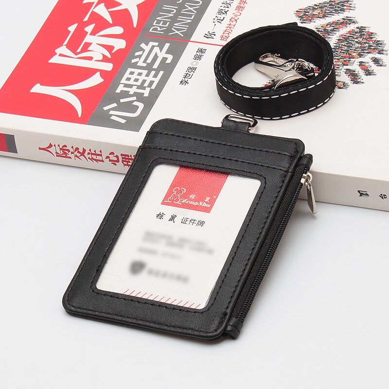 2024 ซิป Multi-ช่องใส่การ์ดพนักงาน Office Worker นักเรียนผู้ถือบัตร PU หนัง Badge Access Control ธุรกิจ Lanyard ซิปทํางาน Permit