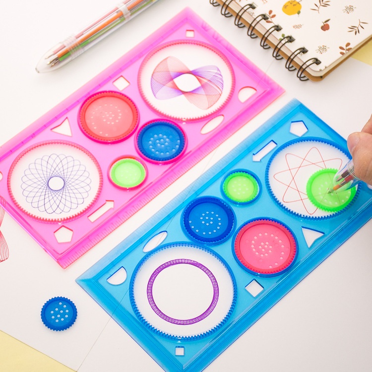 ภาพวาด Multi-function ปริศนา Spirograph ไม้บรรทัดเรขาคณิตร่างเครื่องมือสําหรับนักเรียนวาดของเล่นเด็กการเรียนรู้เครื่องมือศิลปะ