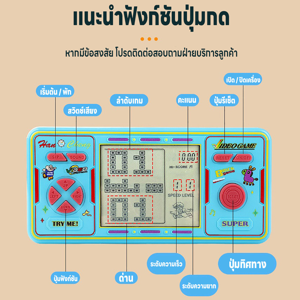 เกมกดคลาสิกยุค90 เกมคลาสสิก หน้าจอใหญ่5นิ้ว เกมพกพา Tetris เครื่องเล่นเกมอิเล็กทรอนิกส์ แถมถ่านAA