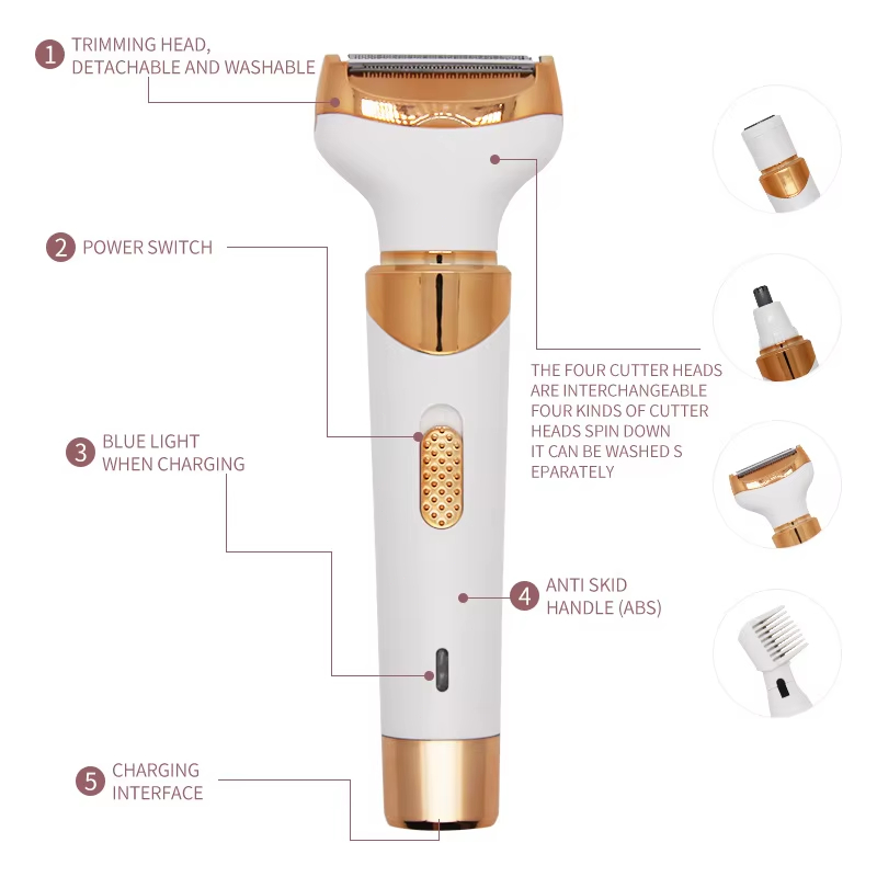 INSMART เครื่องกําจัดขนไฟฟ้า 4in1 เครื่องโกนหนวดไฟฟ้าเครื่องโกนหนวดร่างกาย เต็มรูปแบบชายและหญ ิงร่างกายผม ที่กันจอน