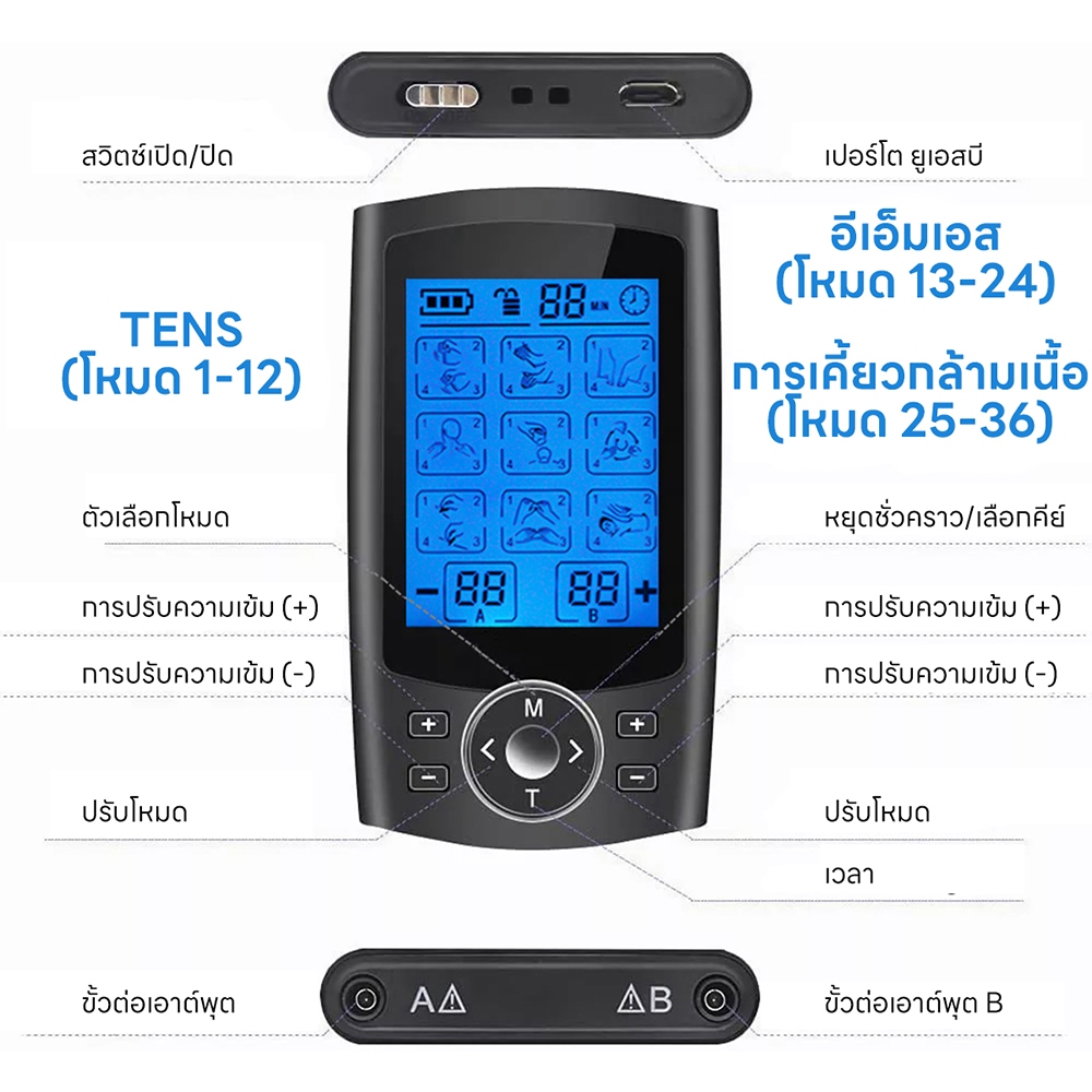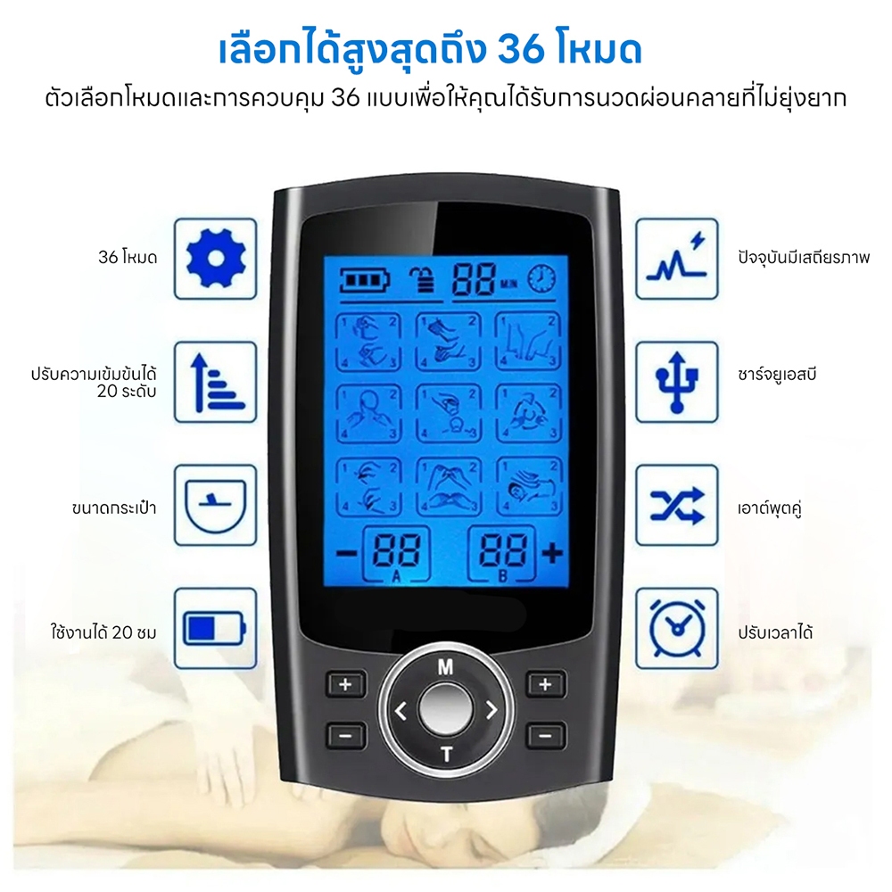 INSMART เครื่องนวดไฟฟ้า TENS 36 โหมด บรรเทาอาการปวดกล้ามเนื้อไฟฟ้า 3ใน1 EMS เครื่องกระตุ้นกล้ามเนื้อ