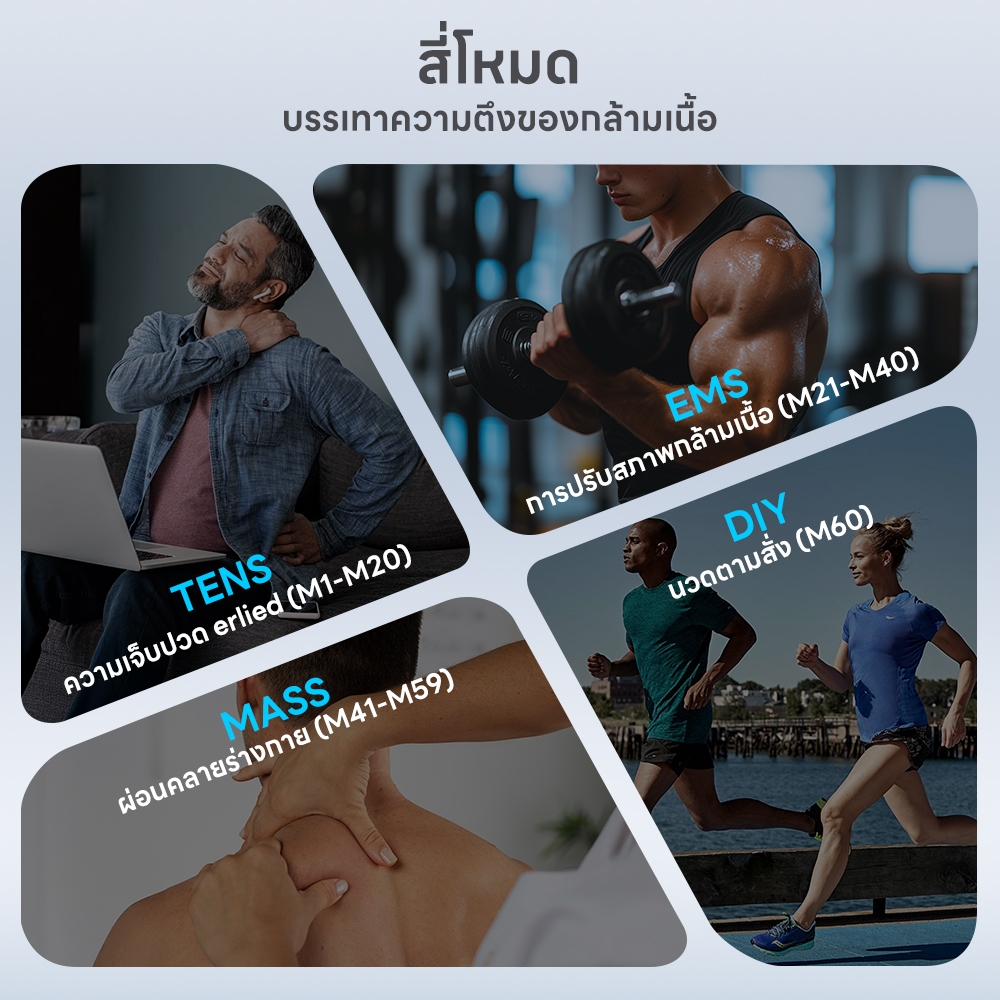 INSMART เครื่องนวดไฟฟ้า TENS 60 โหมด บรรเทาอาการปวดกล้ามเนื้อไฟฟ้า EMS 4ใน1 เครื่องกระตุ้นกล้ามเนื้อ