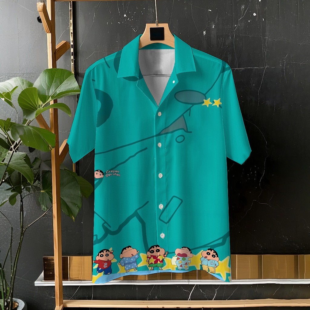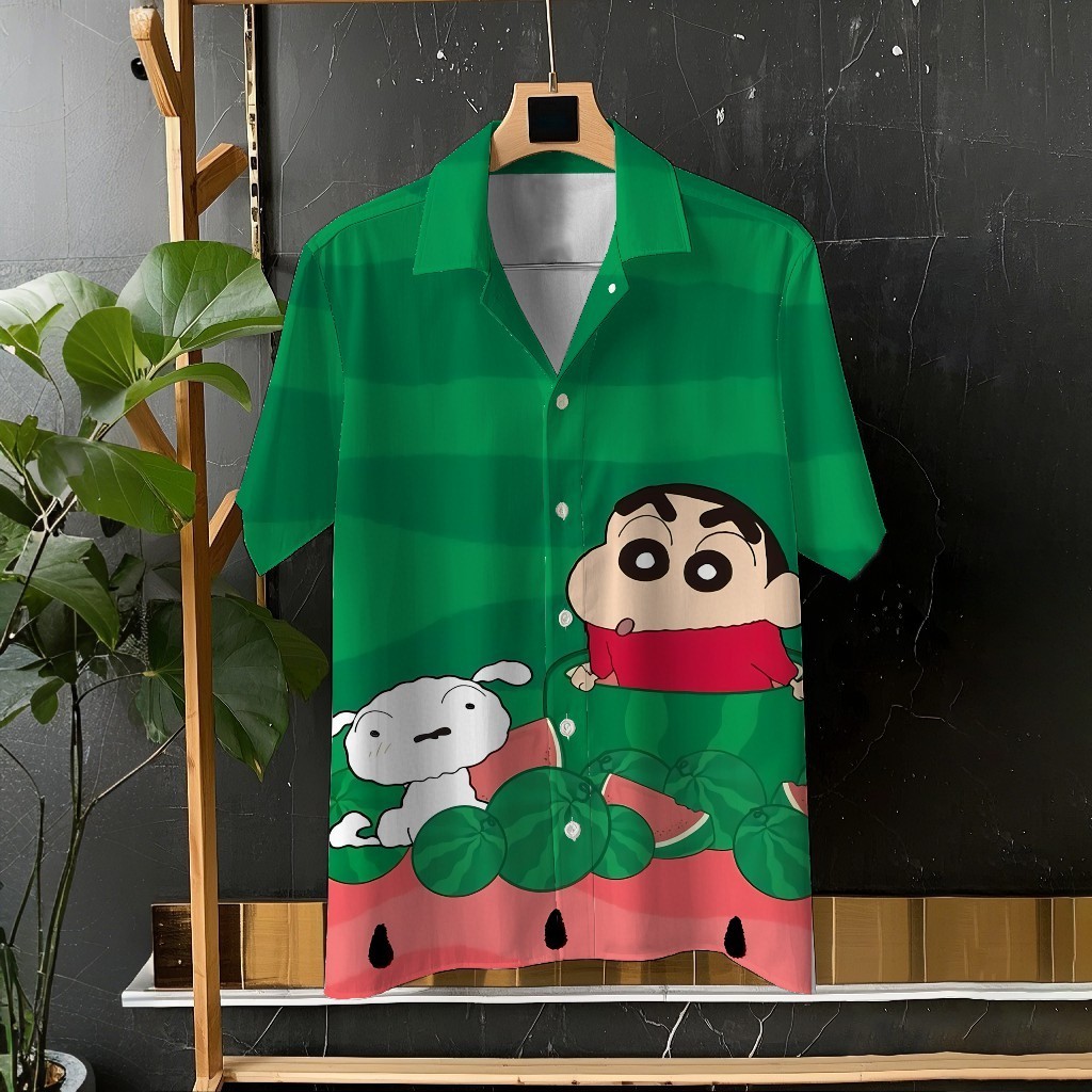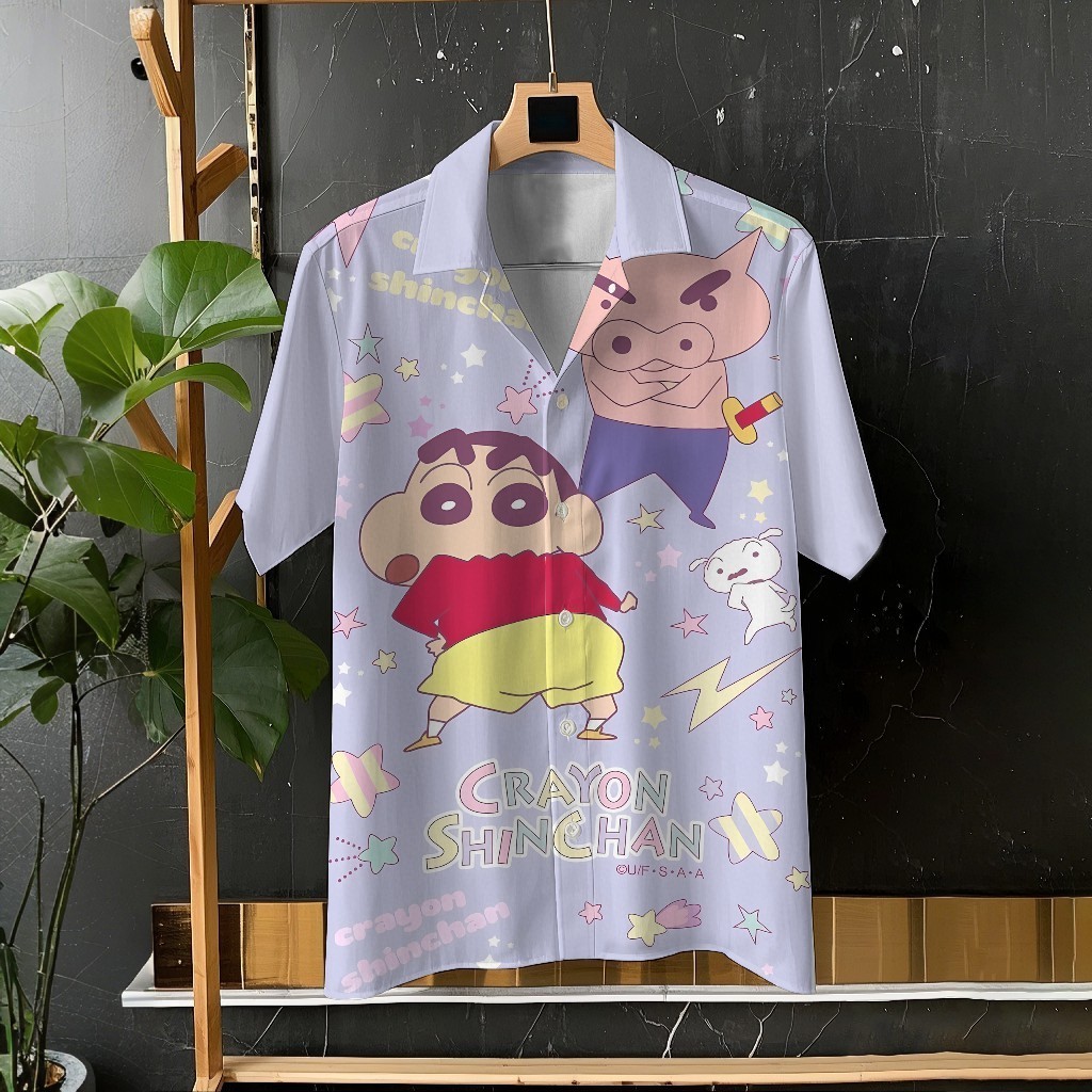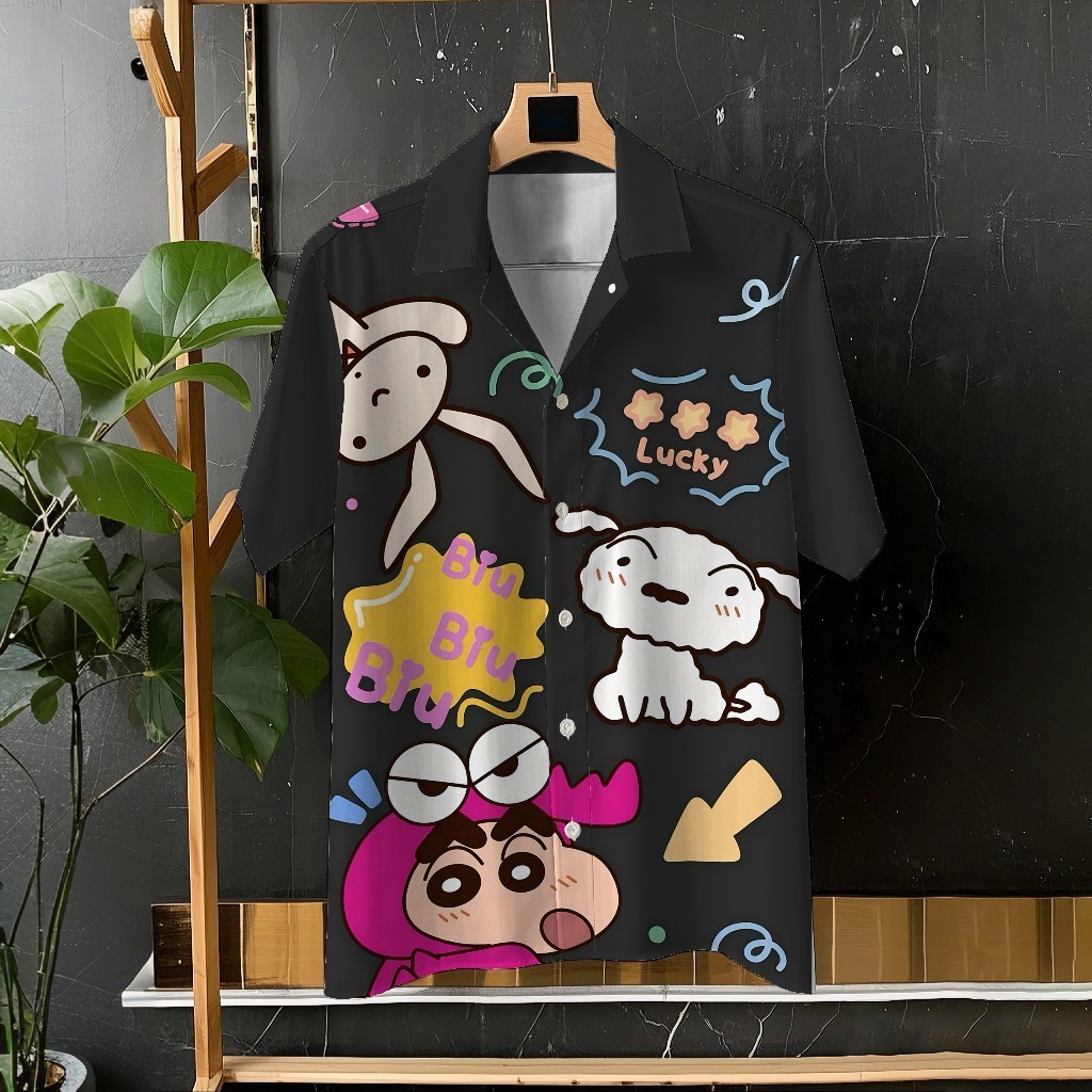 Crayon Shin-chan และ Xiaobai น่ารักการ์ตูนพิมพ์ Unisex เสื้อแขนสั้นเสื้อลำลองทุกวันอเนกประสงค์สบายวันหยุดขนาดใหญ่ S-5XL