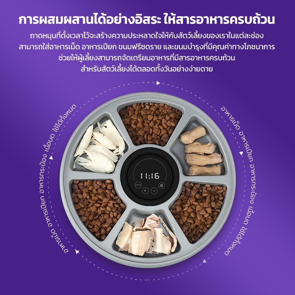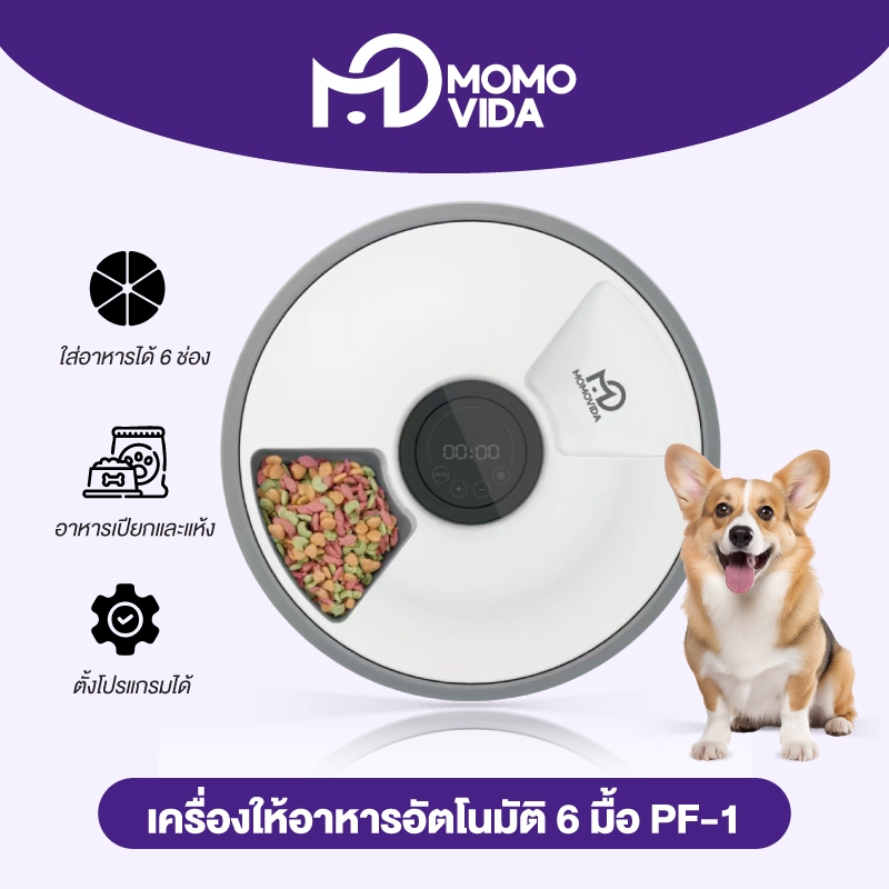 MOMOVIDA 6 Meals เครื่องป้อนอาหารสัตว์เลี้ยงอัตโนมัติ สําหรับอาหารเปียกและแห้ง พร้อมตัวจับเวลาแบบตั้งโปรแกรมได้ PF-01