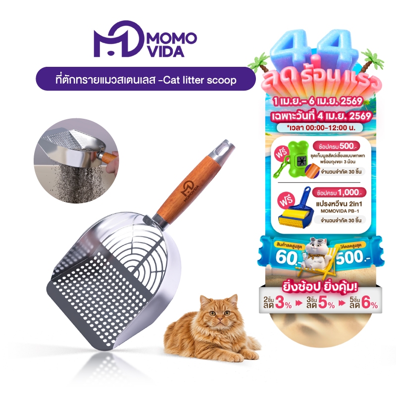 MOMOVIDA ที่ตักทรายแมว ที่ตักทรายแมวแสตนเลส 304 ที่ตักอึแมว ช ้อนตักอึแมว ที่ร่อนอึแมว ช้อนตักทรายแมวขนาดใหญ่