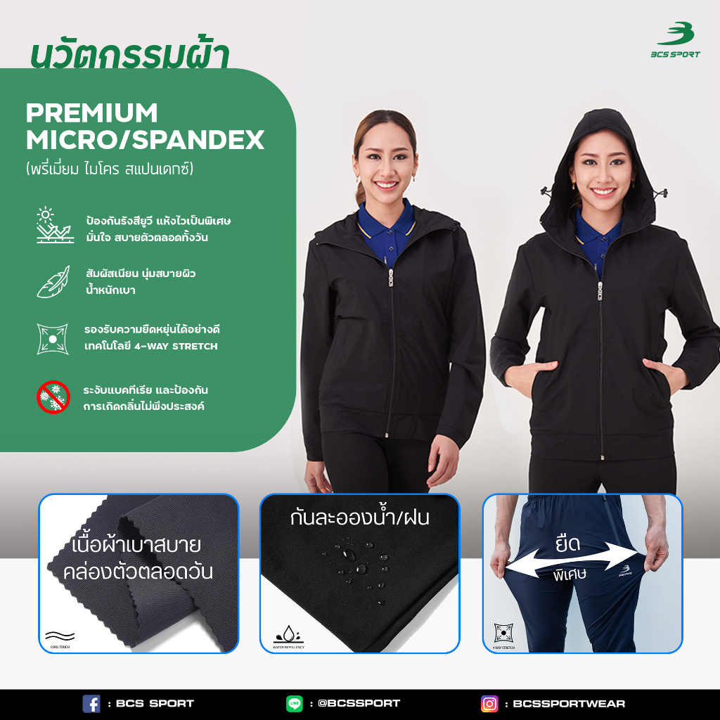 เสื้อแจ็คแก็ตลำลอง มีฮู้ด BCS รหัส SF696 เนื้อผ้าพรี่เมี่ยม ไมโคร-สแปนเด็กซ์ UNISEX แท้100%