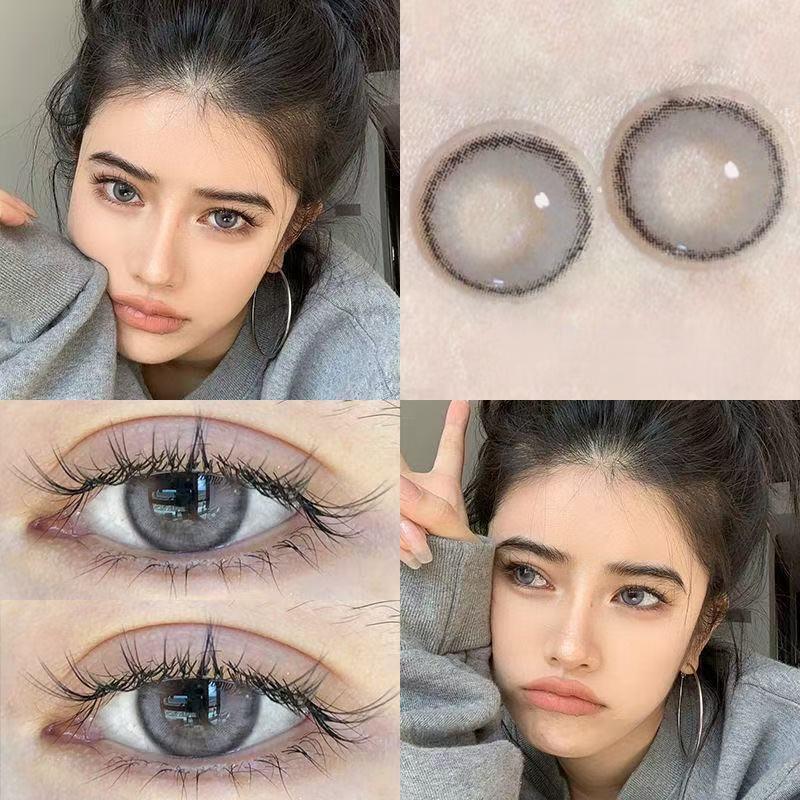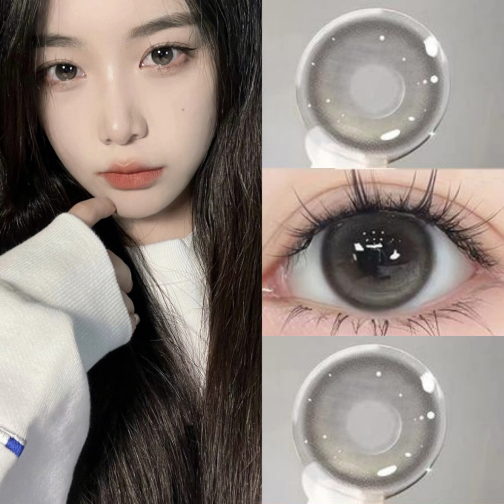 【0.00-6.00】Midroo คอนแทคเลนส์ตาหวาน เลนส์ค่าสายตาสั้น รายเดือน Pudding Pink/Grey-14.2mm