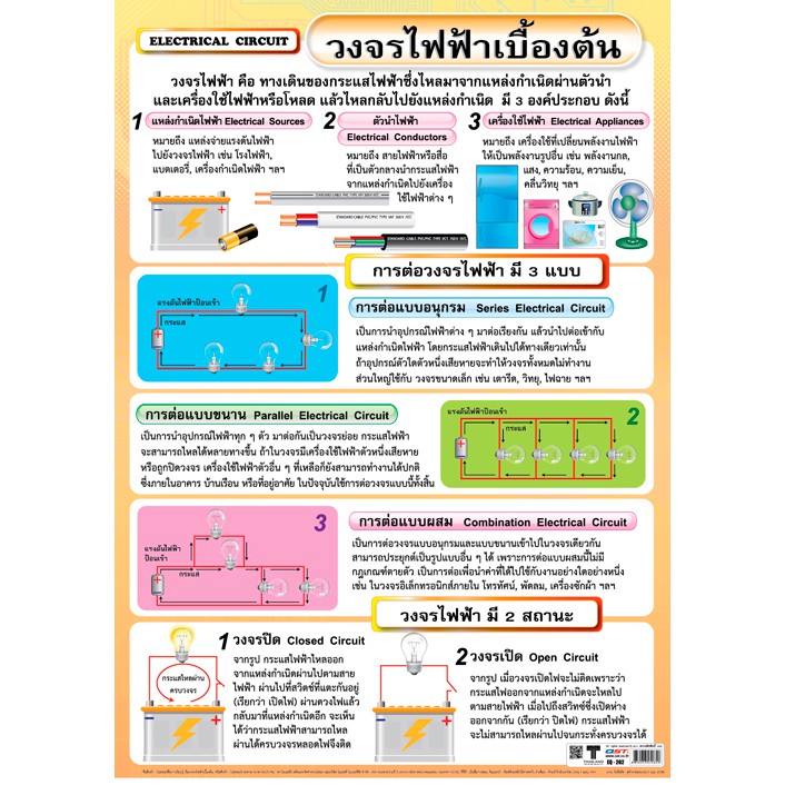 โปสเตอร์เรื่องวงจรไฟฟ้าเบื้องต้น #EQ-262 โปสเตอร์กระดาษ โปสเตอร์สื่อการเรียนการสอน