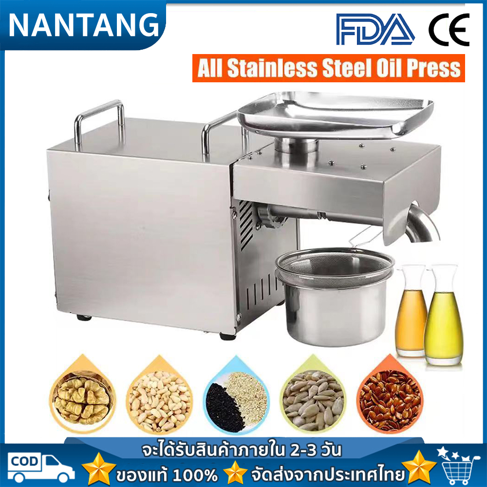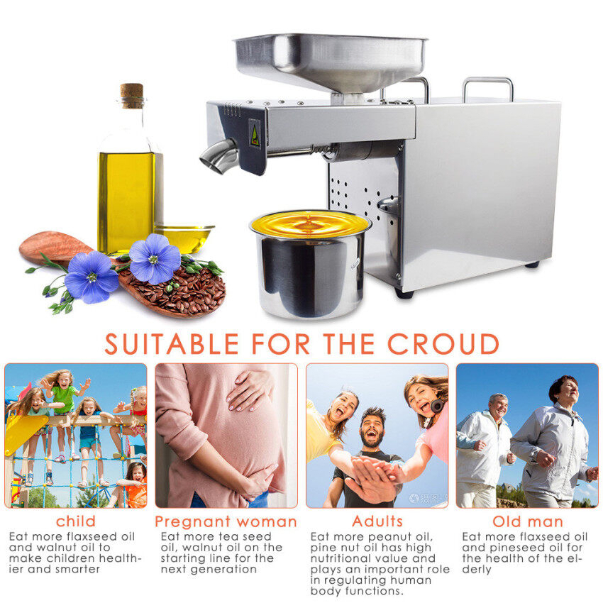 เครื่องสกัดน้ำมัน220โวลต์450วัตต์อัตโนมัติ304กดน้ำมันเหล็กกล้าไร้สนิมเครื่องกดร้อนเย็น Commercial/บ้านเครื่องสกัดน้ำมัน