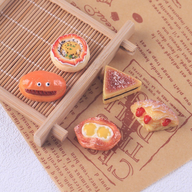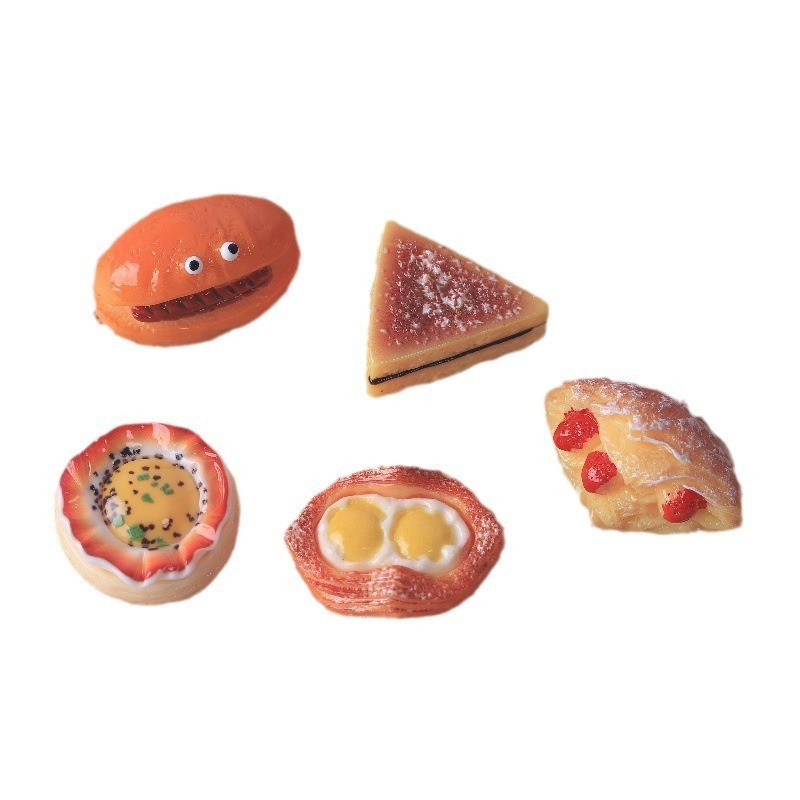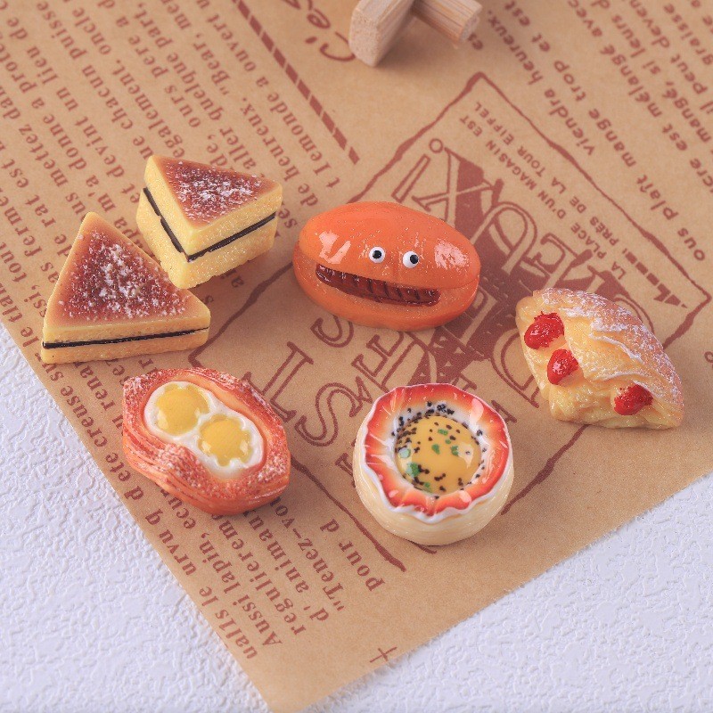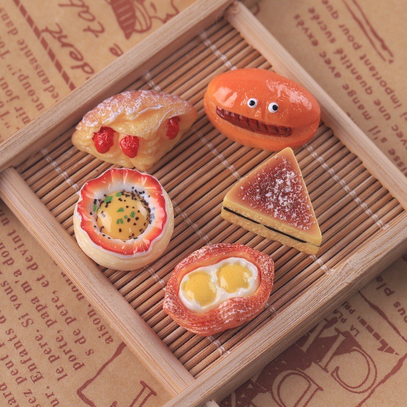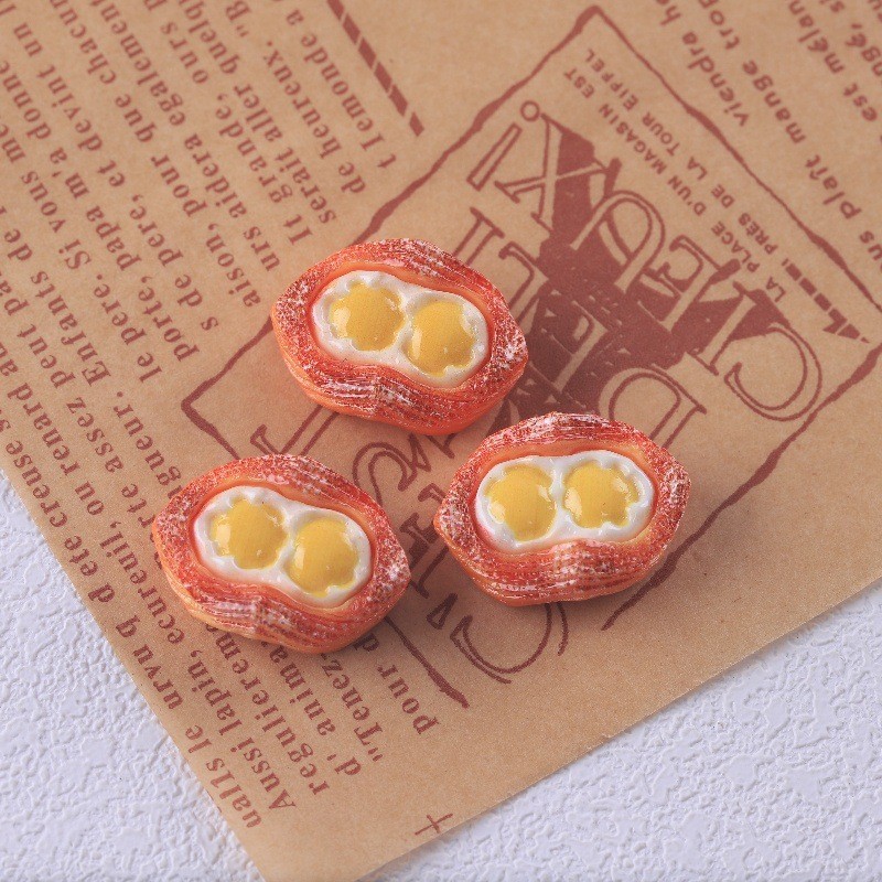 อาหารจําลองของเล่น ทําเอง วัสดุที่ทําด้วยมือบ้านตุ๊กตาเครื่องประดับของเล่นด่างน้ําไข่เจียว มาลาลิวก้า ขนมปังเรซิ่นอุปกรณ์ตกแต่งรองเท้า