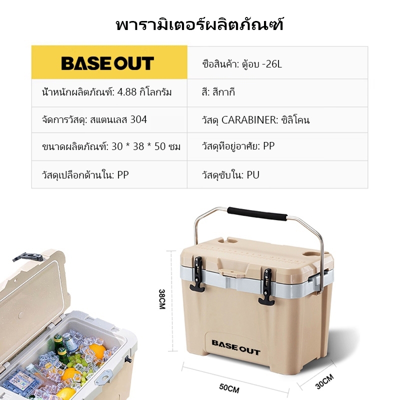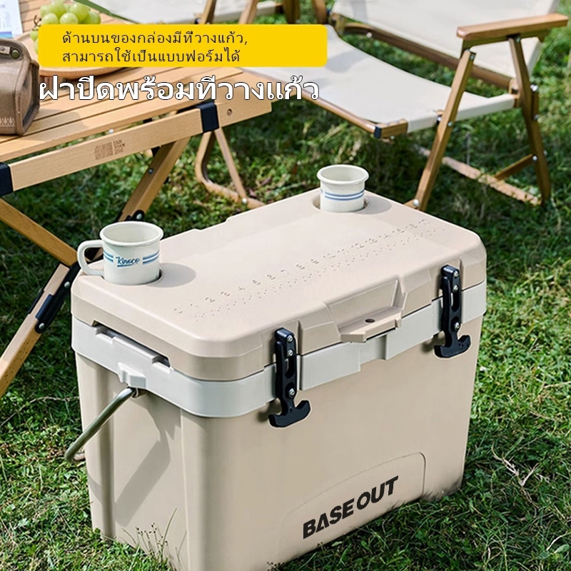 BASE OUT กล่องเก็บความเย็น ความจุขนาดใหญ่ ฉนวนกันความร้อน สําหรับตั้งแคมป์กลางแจ้ง ฉนวนและเครื่อ ✨ส่งจากไทย✨ งทำความเย็นระยะยาว 84H