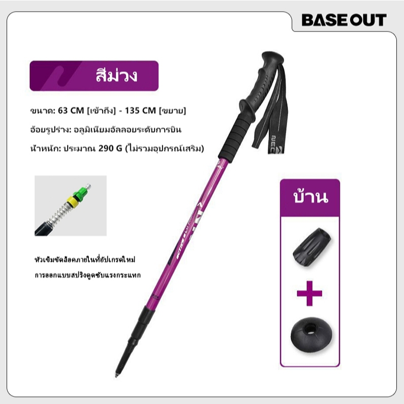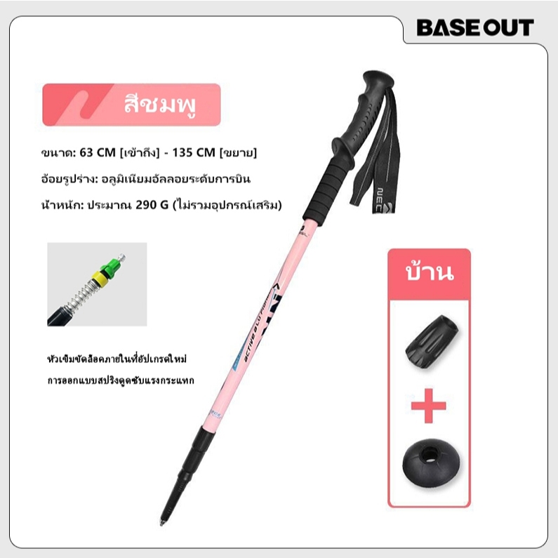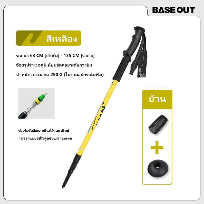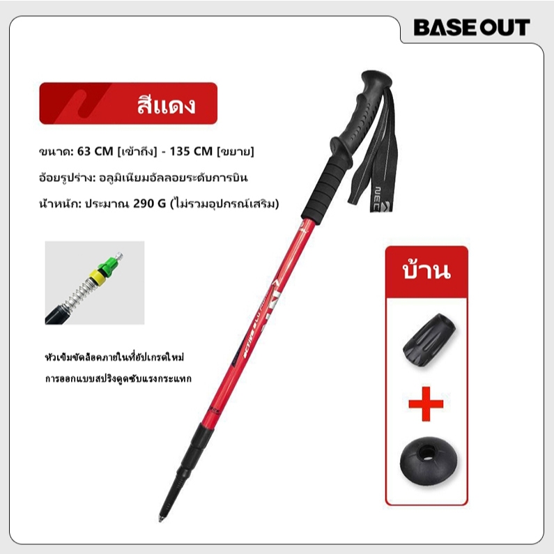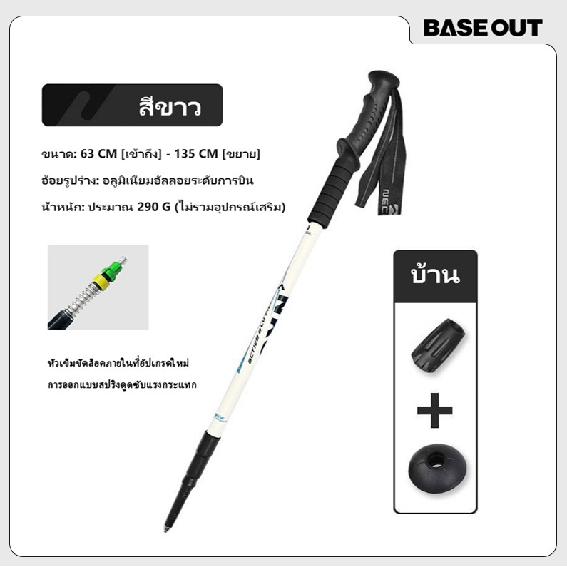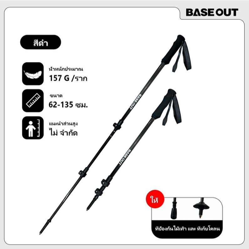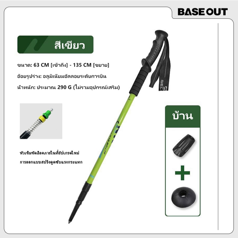BASE OUT 135cm ซม. สําหรับเดินป่า กลางแจ้ง ไม้เท้าปรับความยาวได้ ทำจากอลูมิเนียมอัลลอยด์คุณภาพสูง สไตล์มินิมอล ดอยอินทนนท์ อุปกรณ์จำเป็นสำหรับปีนเขาในหิม