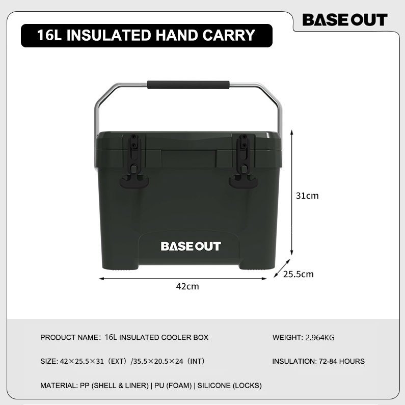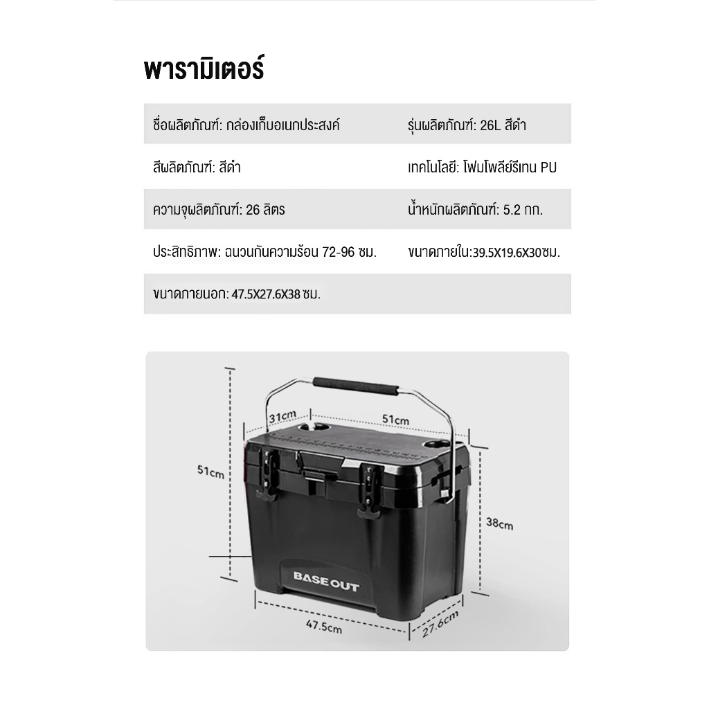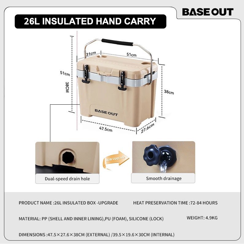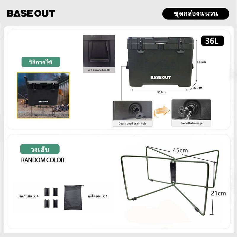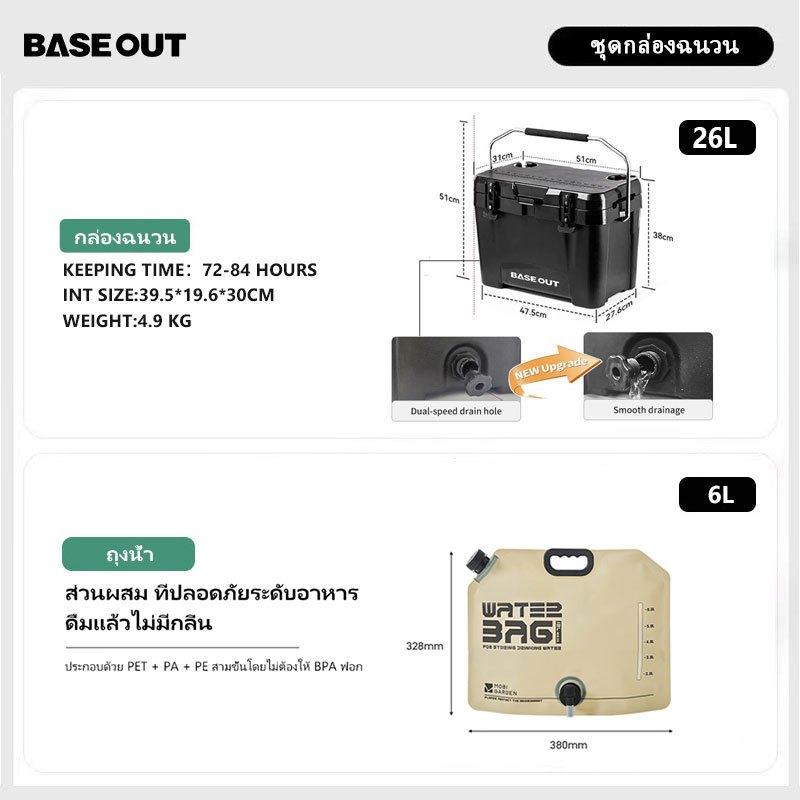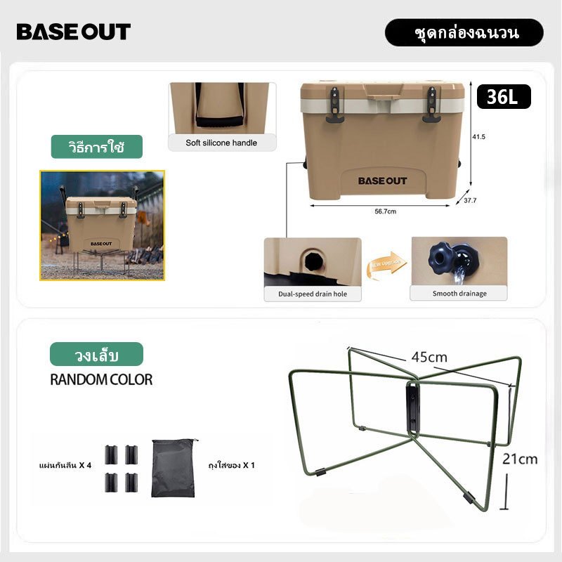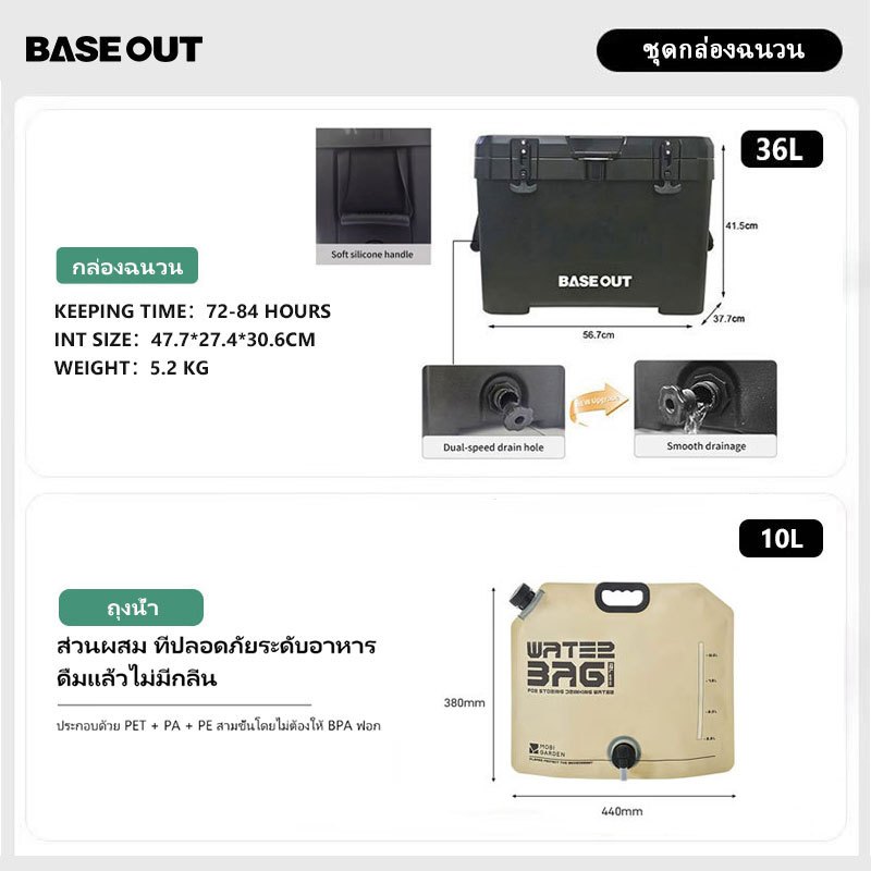 BASEOUT กล่องฉนวนกันความร้อนกลางแจ้งแคมป์ปิ้งกล่องเก็บความเย็นความจุขนาดใหญ่