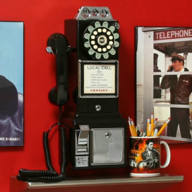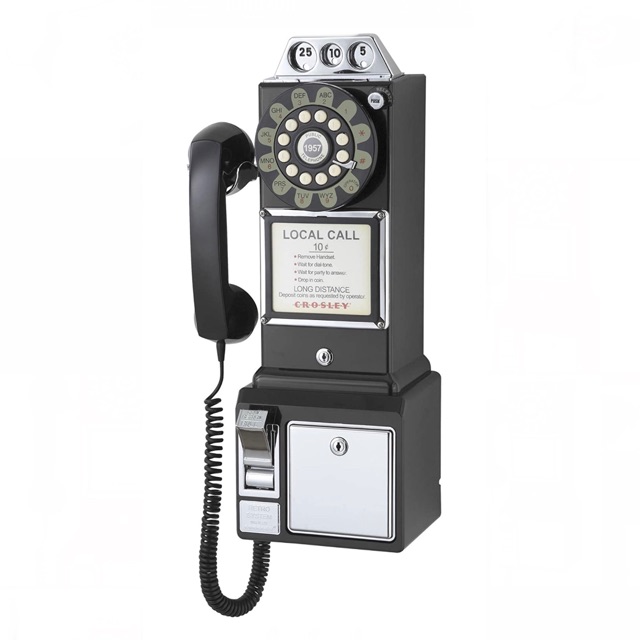 Crosley โทรศัพท์บ้านพื้นฐาน Payphone ใช้งานได้จริง สีดำ วินเทจ สวยงาม ตกแต่งบ้านแบบมีสไตล์