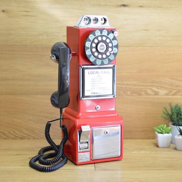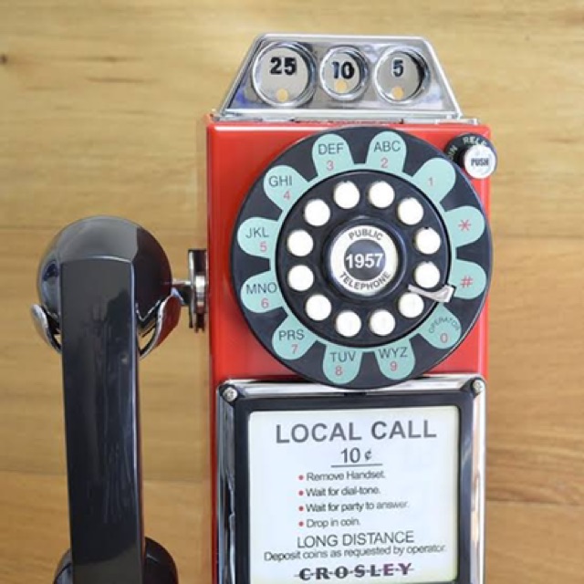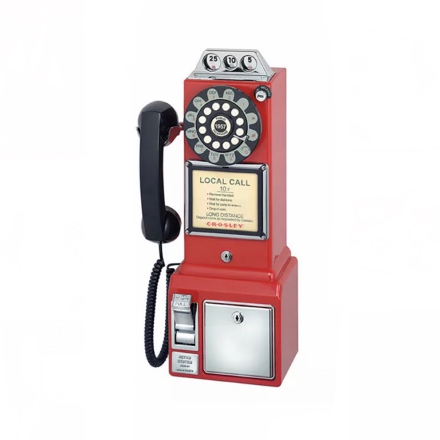 Crosley โทรศัพท์บ้านพื้นฐาน Payphone ใช้งานได้จริง สีแดง วินเทจ สวยงาม ตกแต่งบ้านแบบมีสไตล์