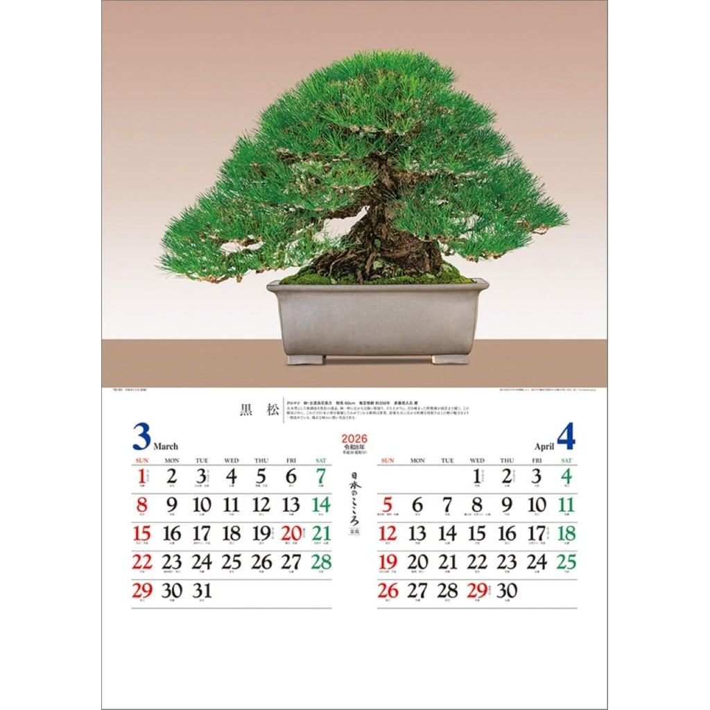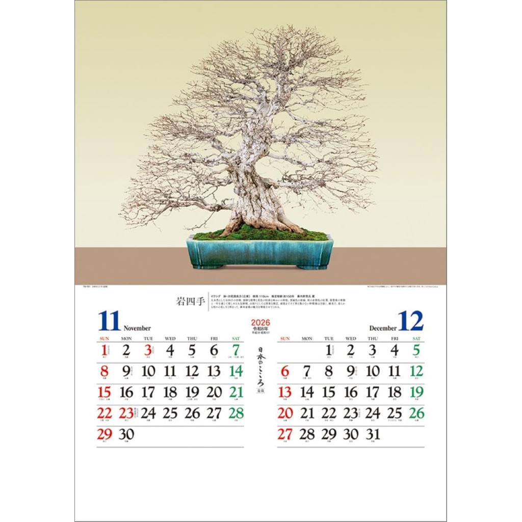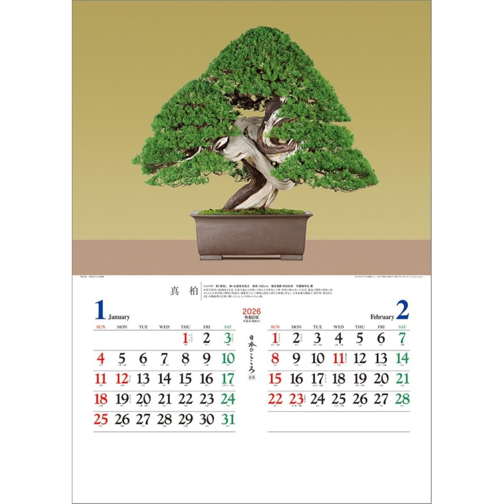 Nihon no Kokoro Bonsai Wall Calendar 2026 TD-721 ปฏิทินแขวนลายบอนไซ ศิ ลปะญี่ปุ่น