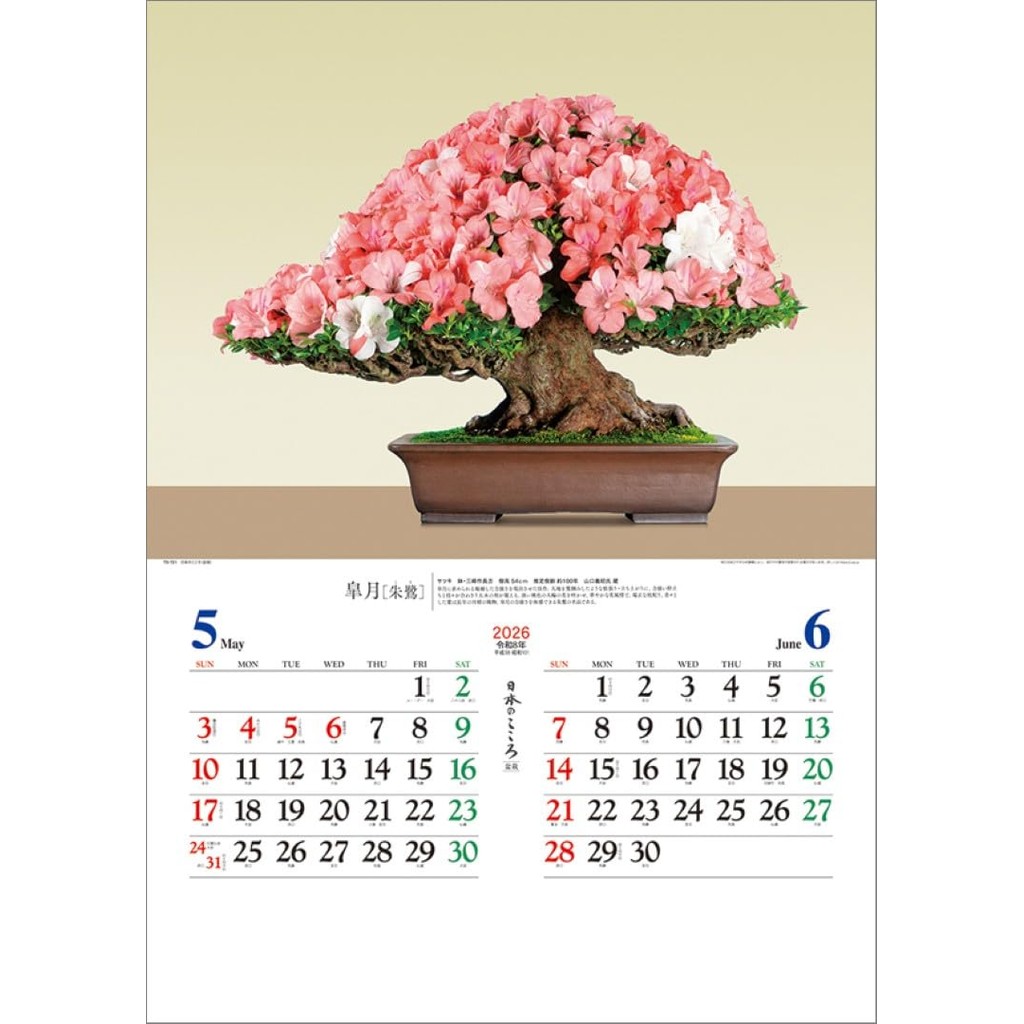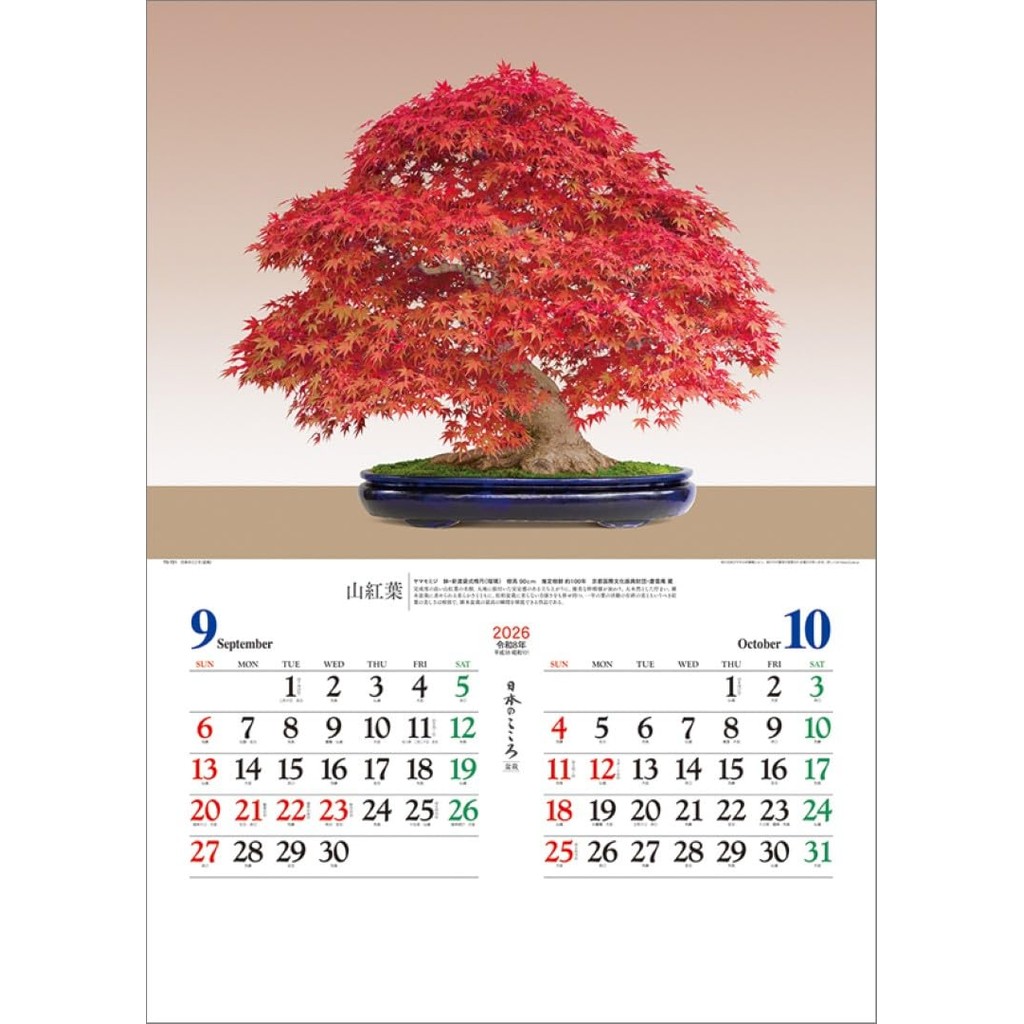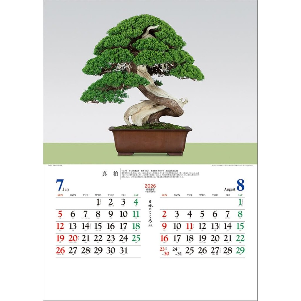 Nihon no Kokoro Bonsai Wall Calendar 2026 TD-721 ปฏิทินแขวนลายบอนไซ ศิ ลปะญี่ปุ่น