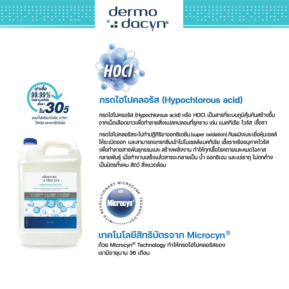 1 แถม 2 Dermodacyn Disinfecting Solution น้ำยาฆ่าเชื้อ ขนาด 5 ลิตร แถมฟรี ขนาด 1 ลิตร จำนวน 2 ขวด
