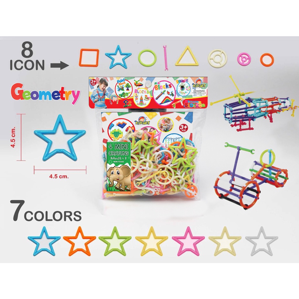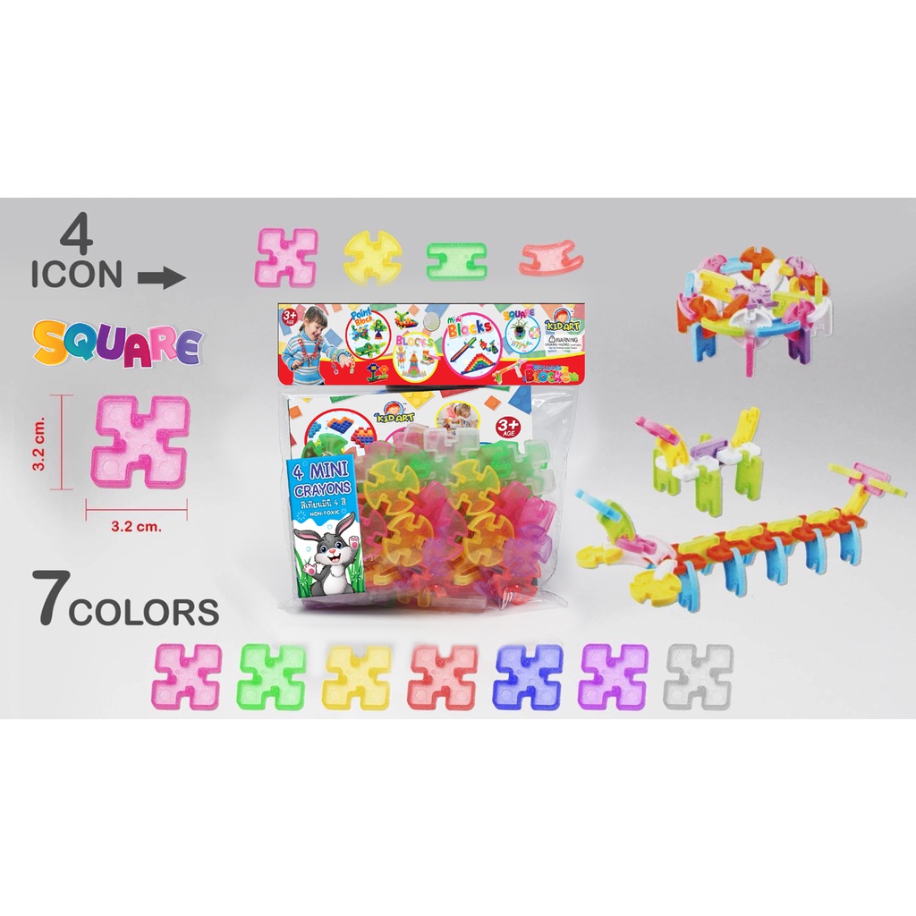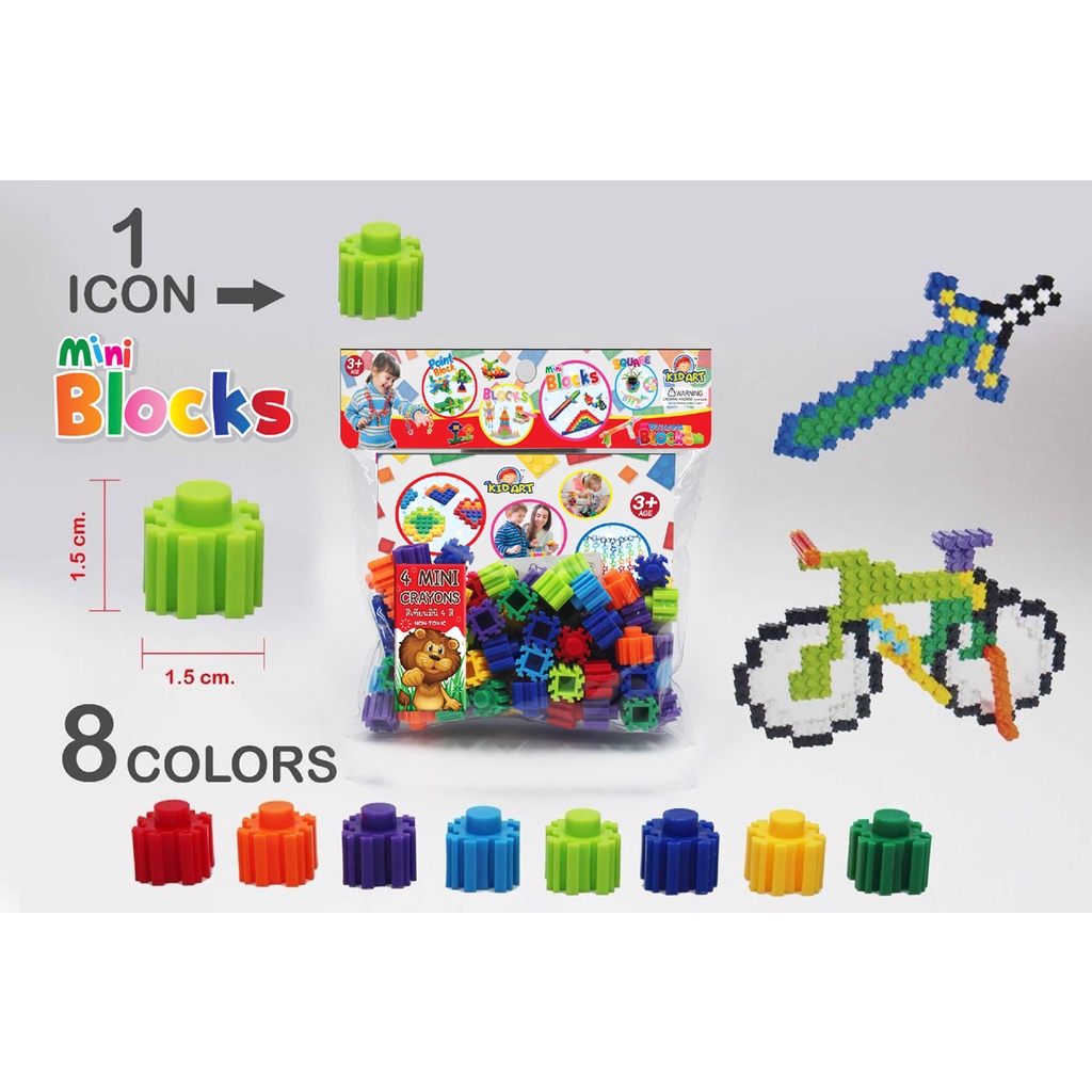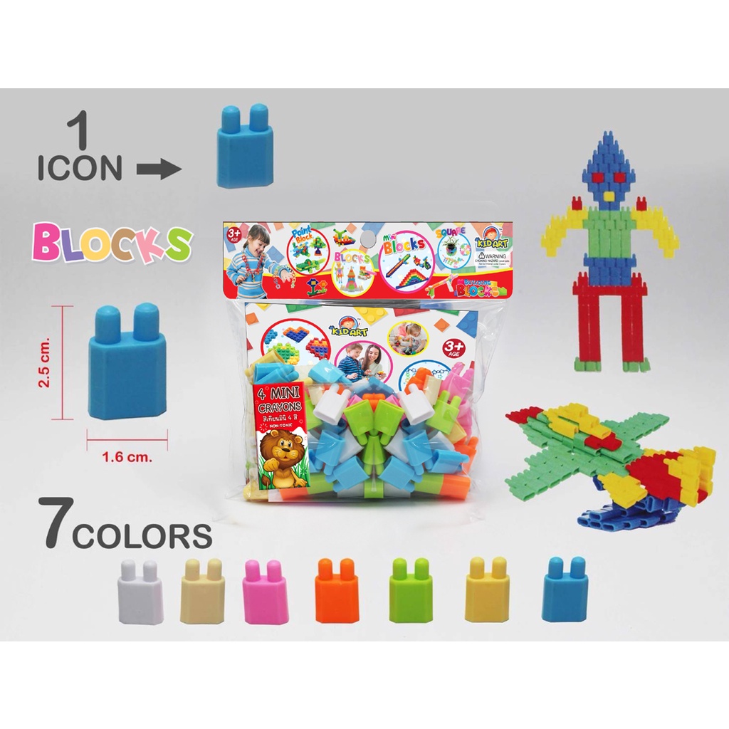 คิดอาร์ท ชุดตัวต่อเสริมทักษะ คละลาย/คละสี 60กรัม+สีเทียน4สี Kidart Mini Blocks + Crayons mini 4colors