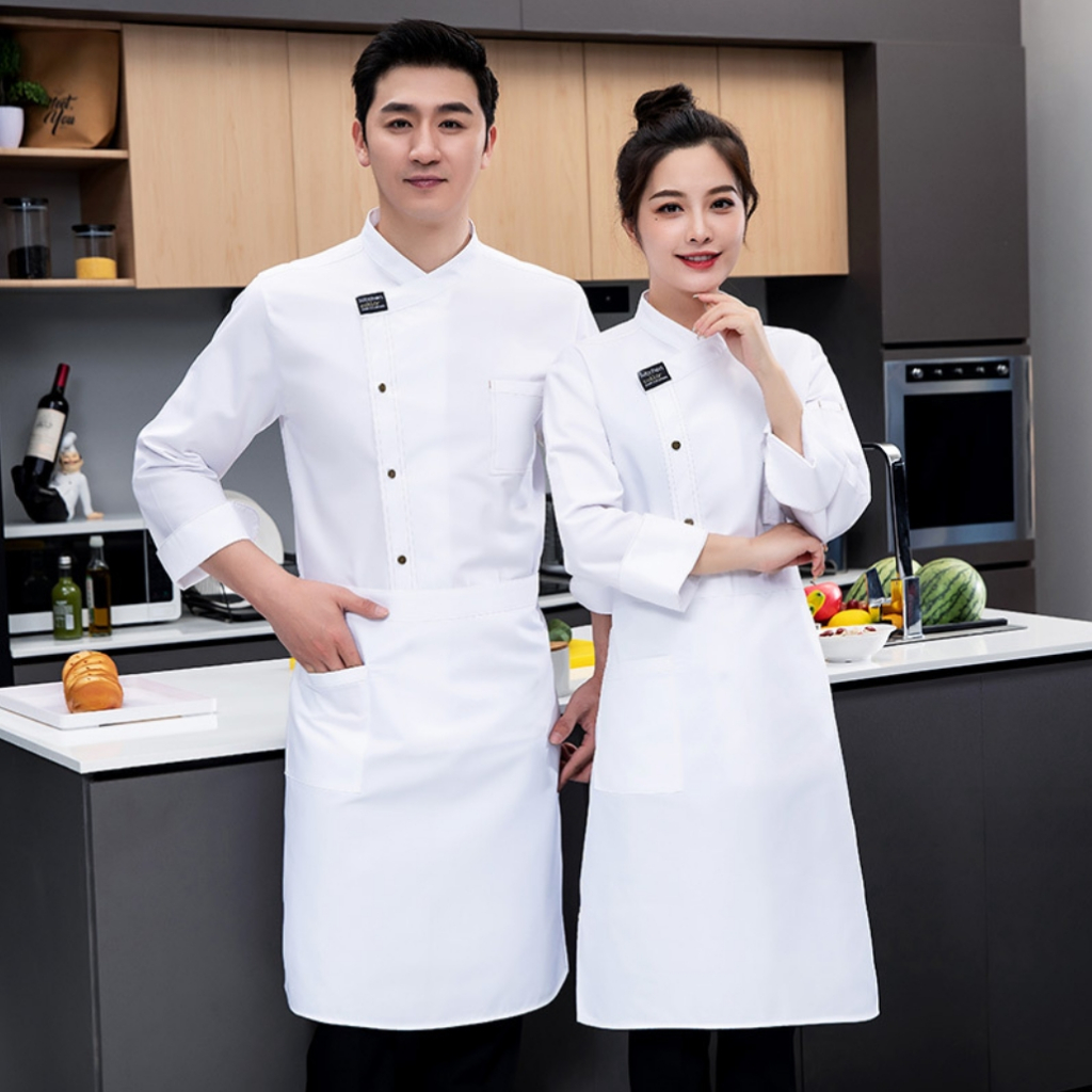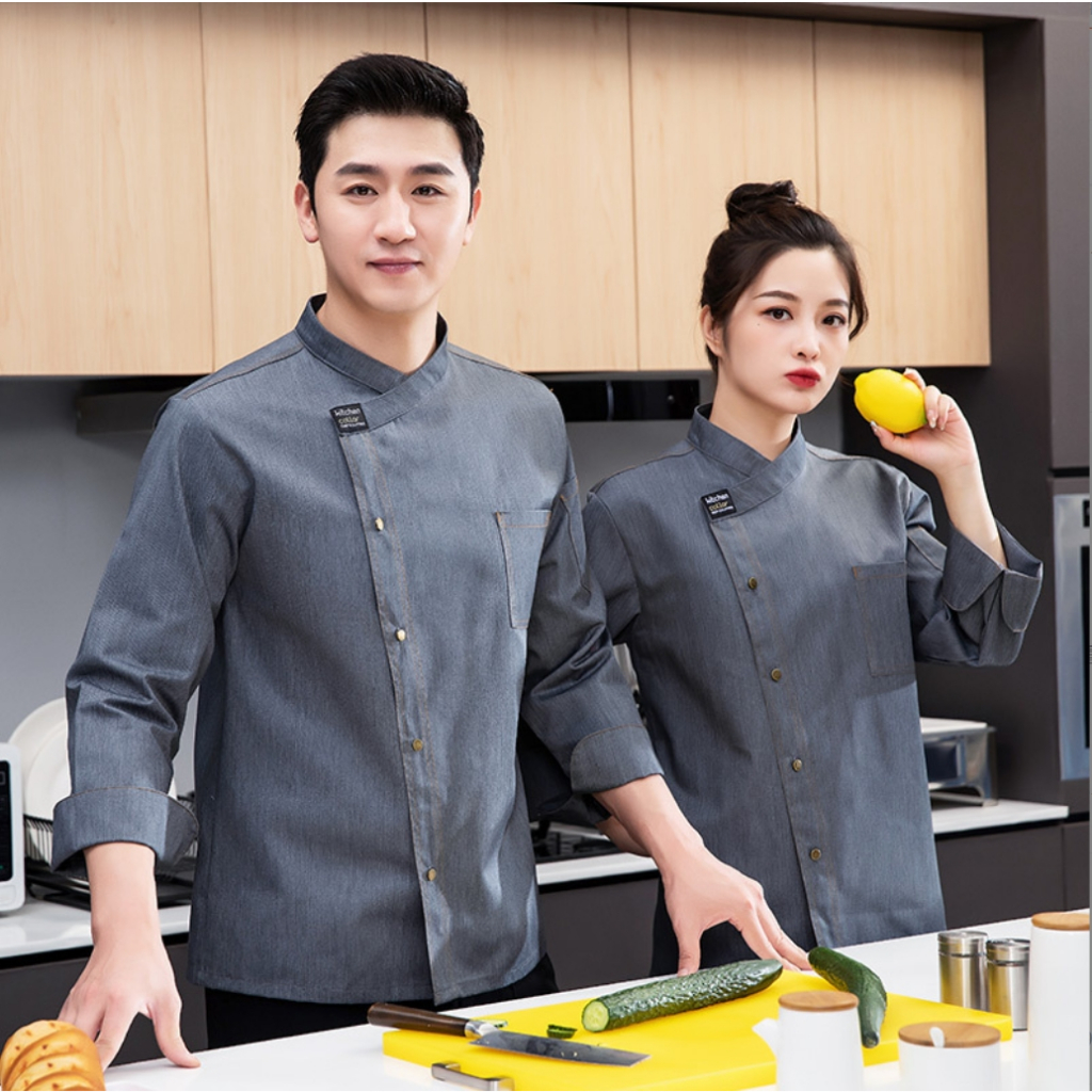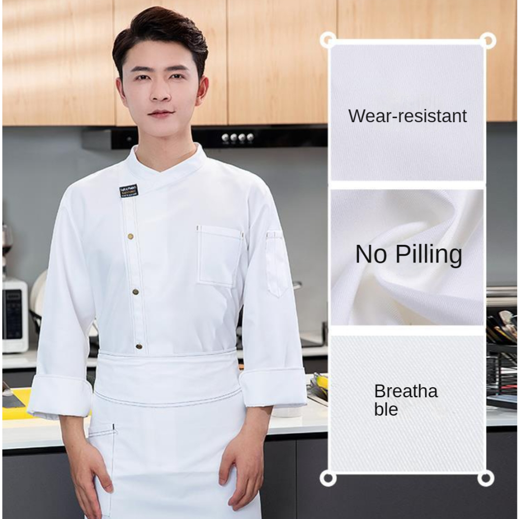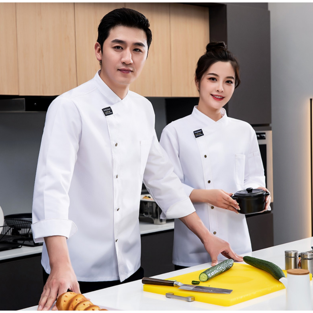 ชุดยูนิฟอร์มเชฟ แขนยาว ลายโลโก้เชฟ สีดํา สําหรับผู้ชาย และผู้หญิง เหมาะกับร้านอาหาร ร้านกาแฟ