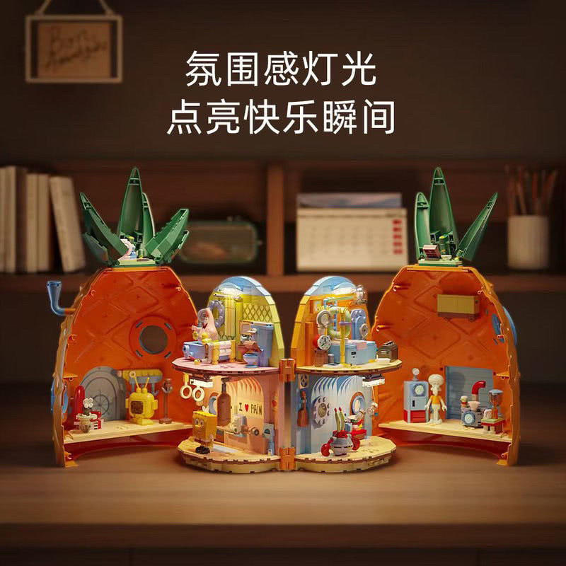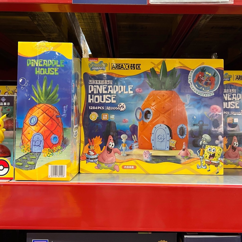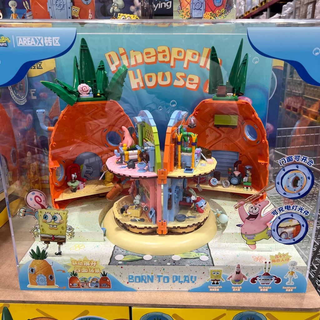 Sam ของแท้ Brick Area SpongeBob SquarePants บ้านสับปะรดประกอบอาคารบล็อกของแท้ที่ได้รับอนุญาต Openable Box Hut พร้อมฐาน