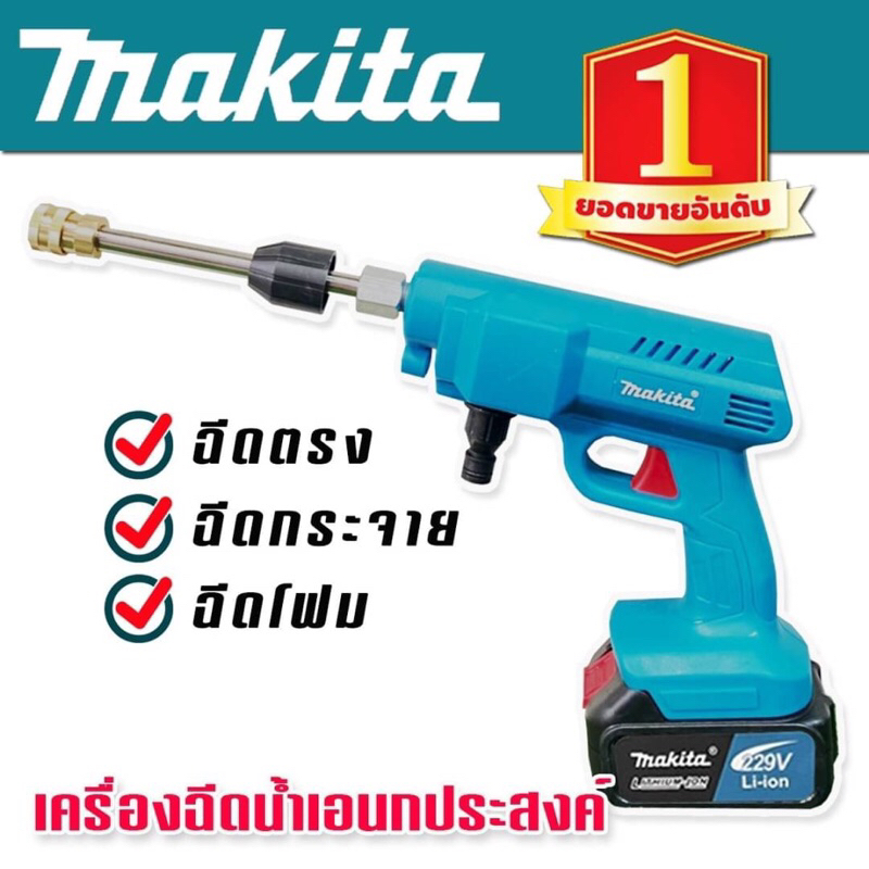 Makita เครื่องฉีดน้ำไร้สาย Makita 229V แถมฟรี แบต Lithuim Li-ion ก้อนใหญ่ 2 ก้อน อึด ทน แรงดี พร้อมกล่องจัดเก็บอุปกรณ์