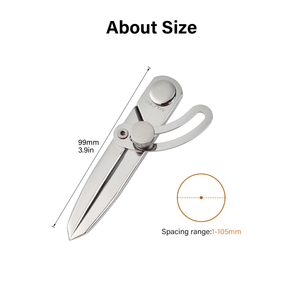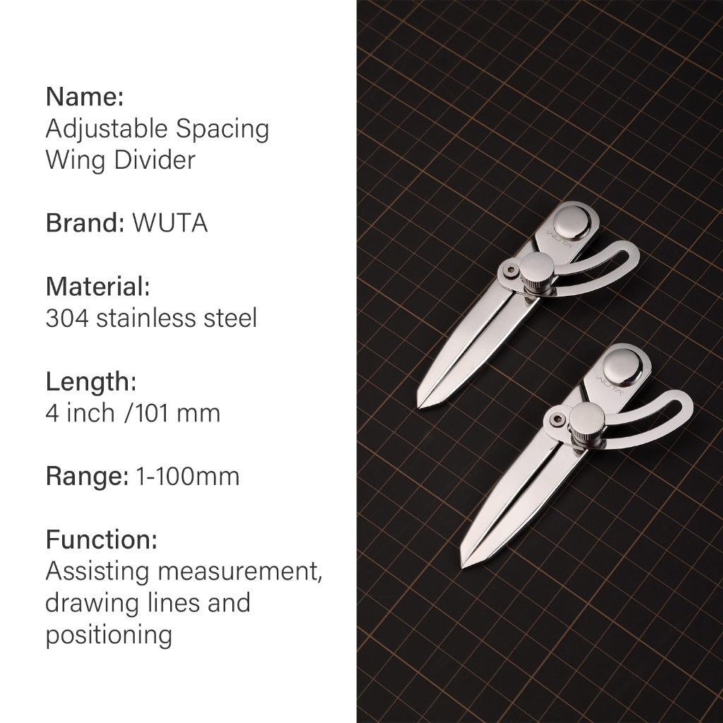 WUTA เข็มทิศหนัง ไม้บรรทัดวัดระยะห่างแบบปรับได้ ไม้บรรทัดวัดระยะปีก 304 Stainless Steel Adjustable Spacing Wing Divider
