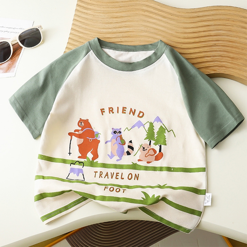 เสื้อยืดแขนสั้นสำหรับเด็กผู้ชาย1-4ขวบ เสื้อยืดแฟชั่นเด็ก พิมพ์ลายน่ารัก ผ้าคอตตอน