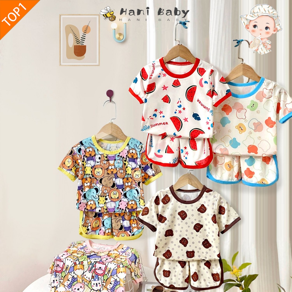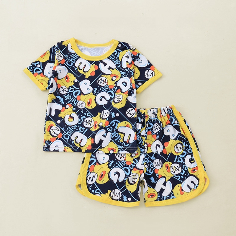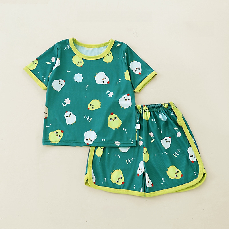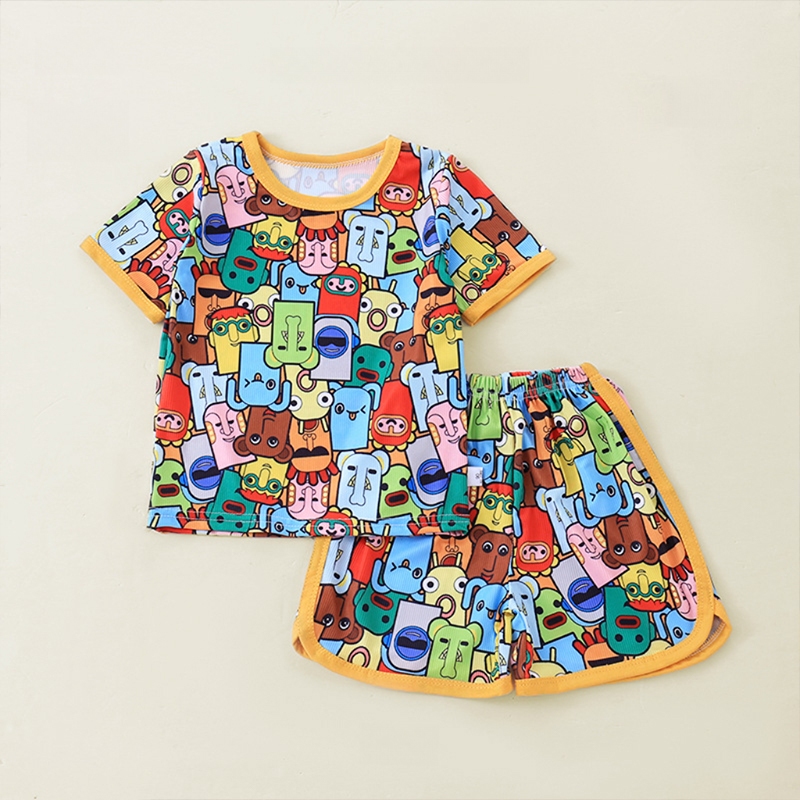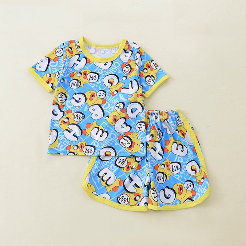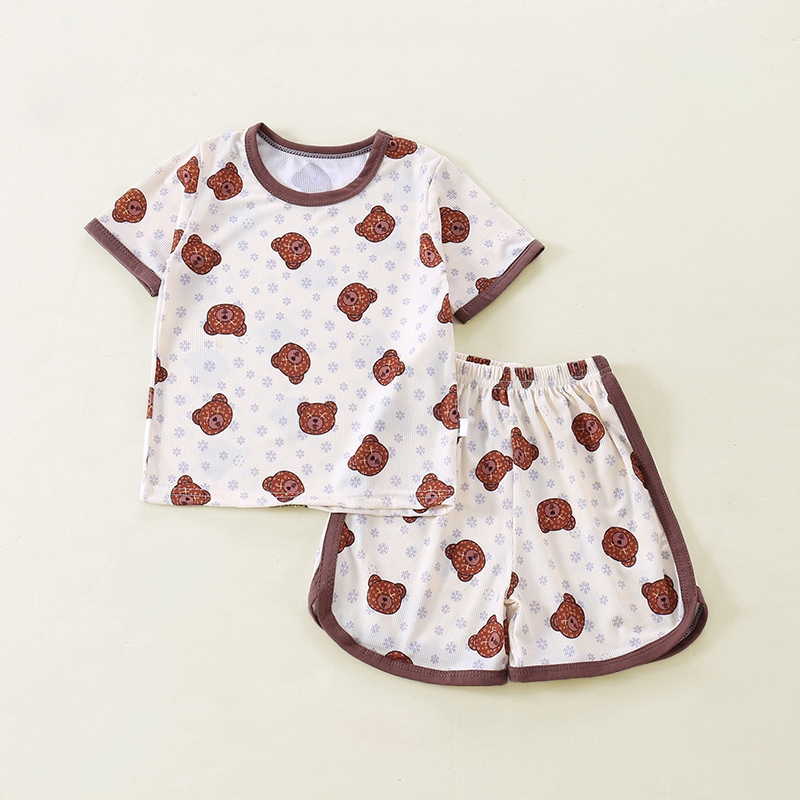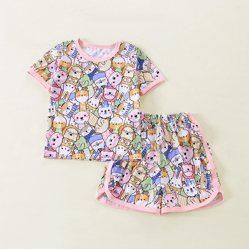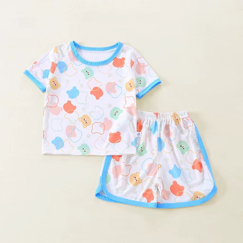 เสื้อแขนสั่น+กางเกงขาสั้นผ้าร้องเล็ก ชุดนอนเด็ก ผ้านิ่มใส่สบาย แฟชั่นเด็กฤดูร้อน เด็ก0-4ปี