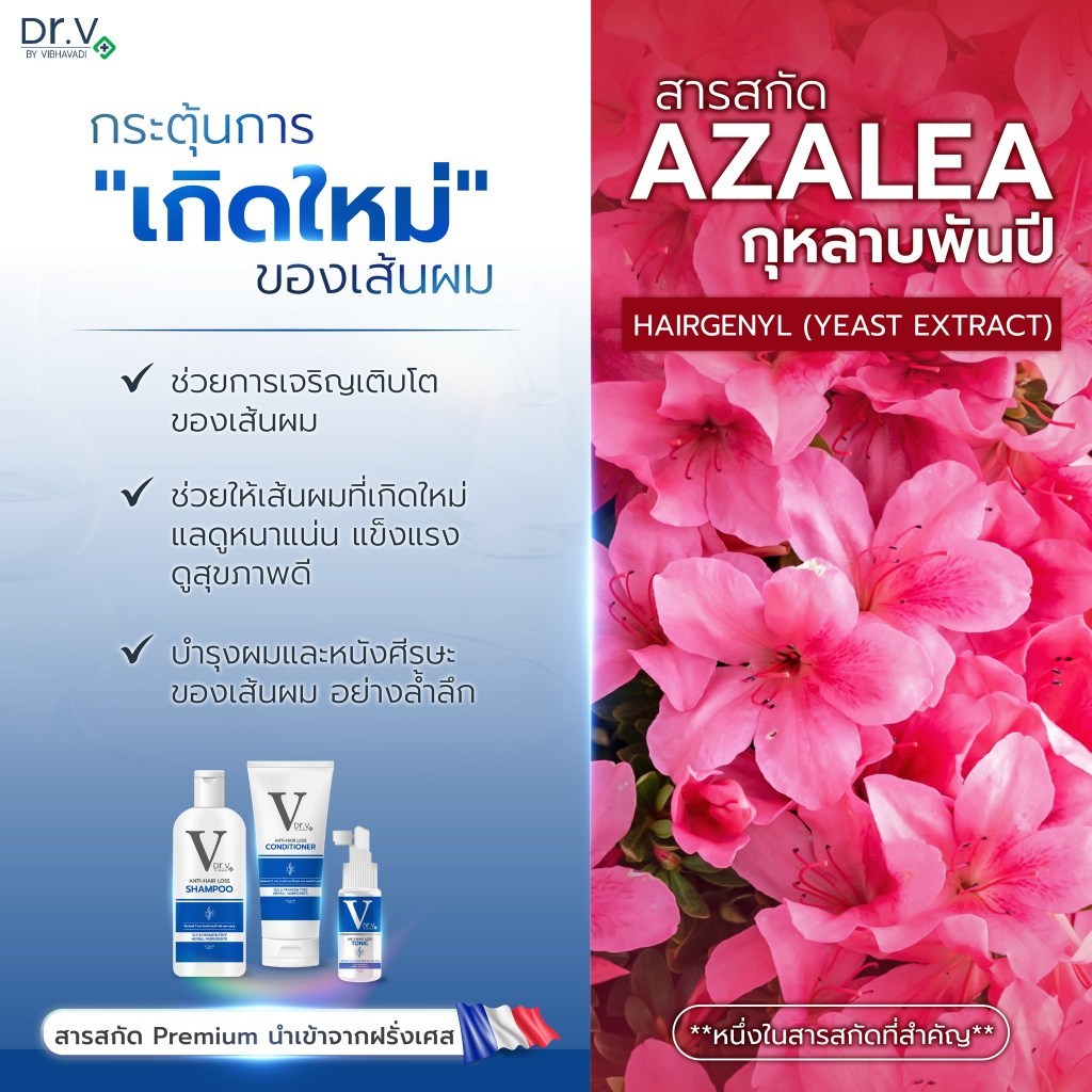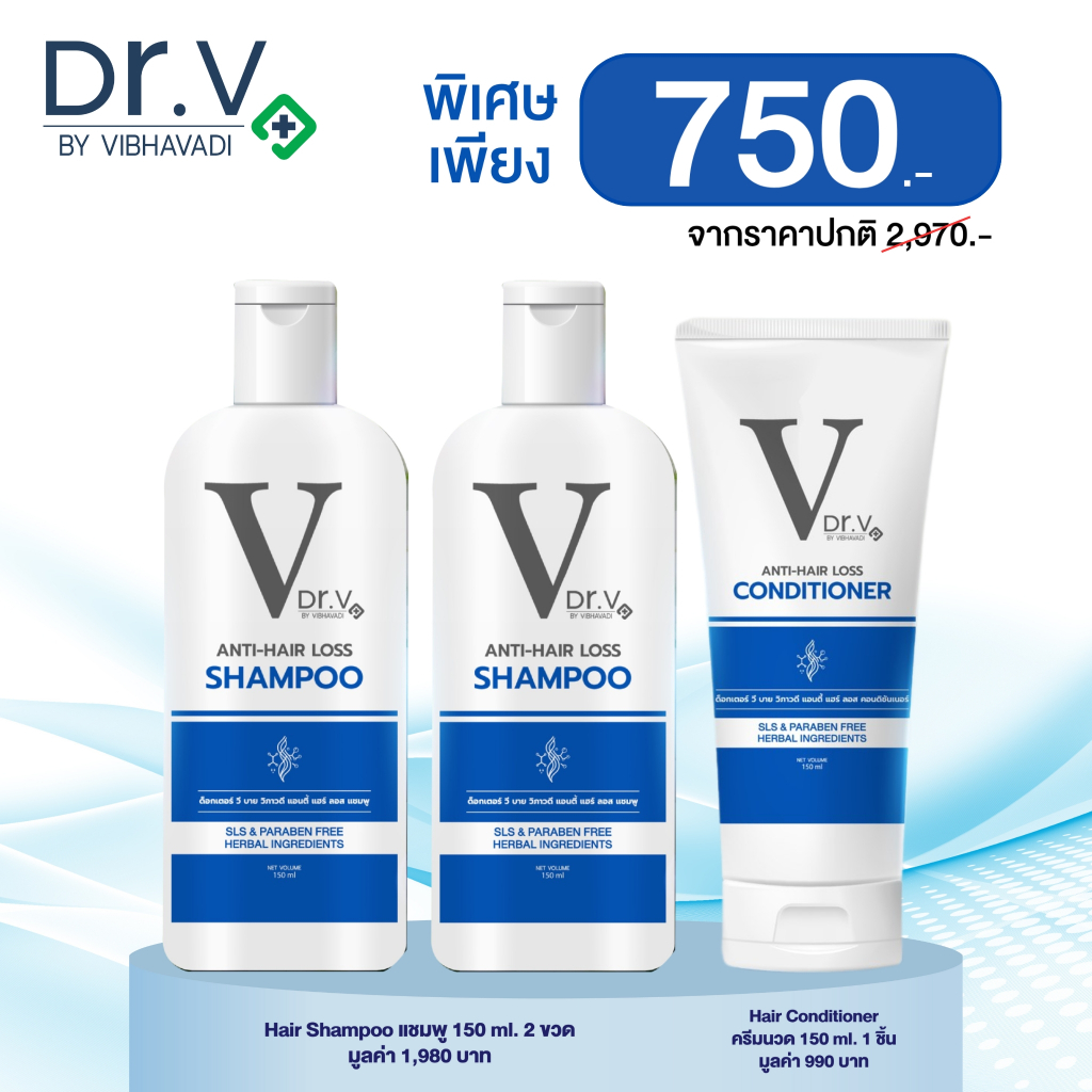Dr.V anti-hair loss shampoo 2 ขวด + Dr.V VIBHAVADI ANTI-HAIR LOSS Conditioner 1 ขวด ราคา 750.-