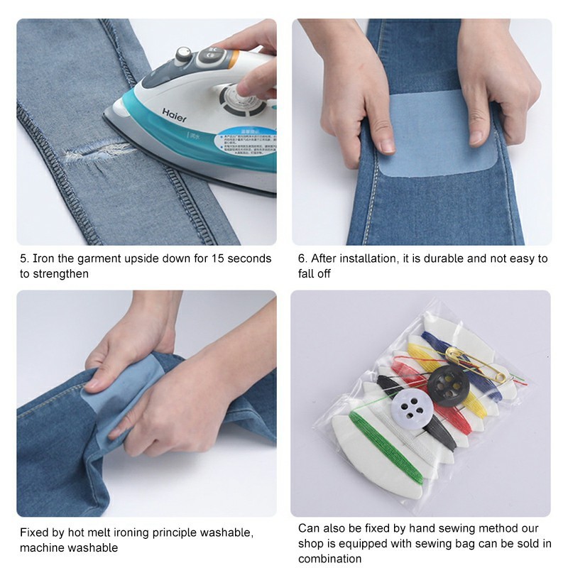COD❤️กางเกงยีนส์ซ่อมหลุมตัดกลับกาวกางเกงสี่เหลี่ยมผืนผ้าผ้ากลมวาง-a.one
