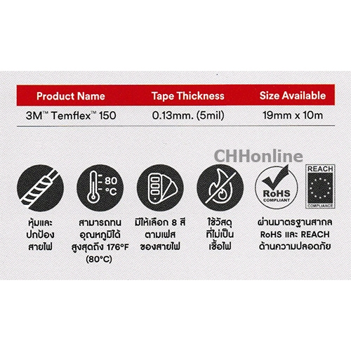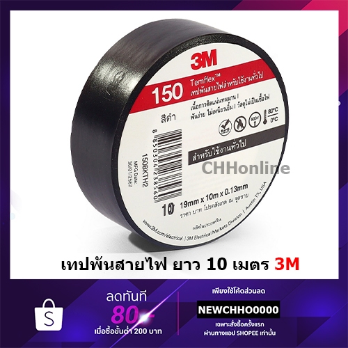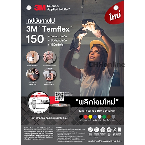 3M เทปพันสายไฟ 10 เมตร Temflex Plus 150 ขนาด 3/4 นิ้ว x 10 เมตร