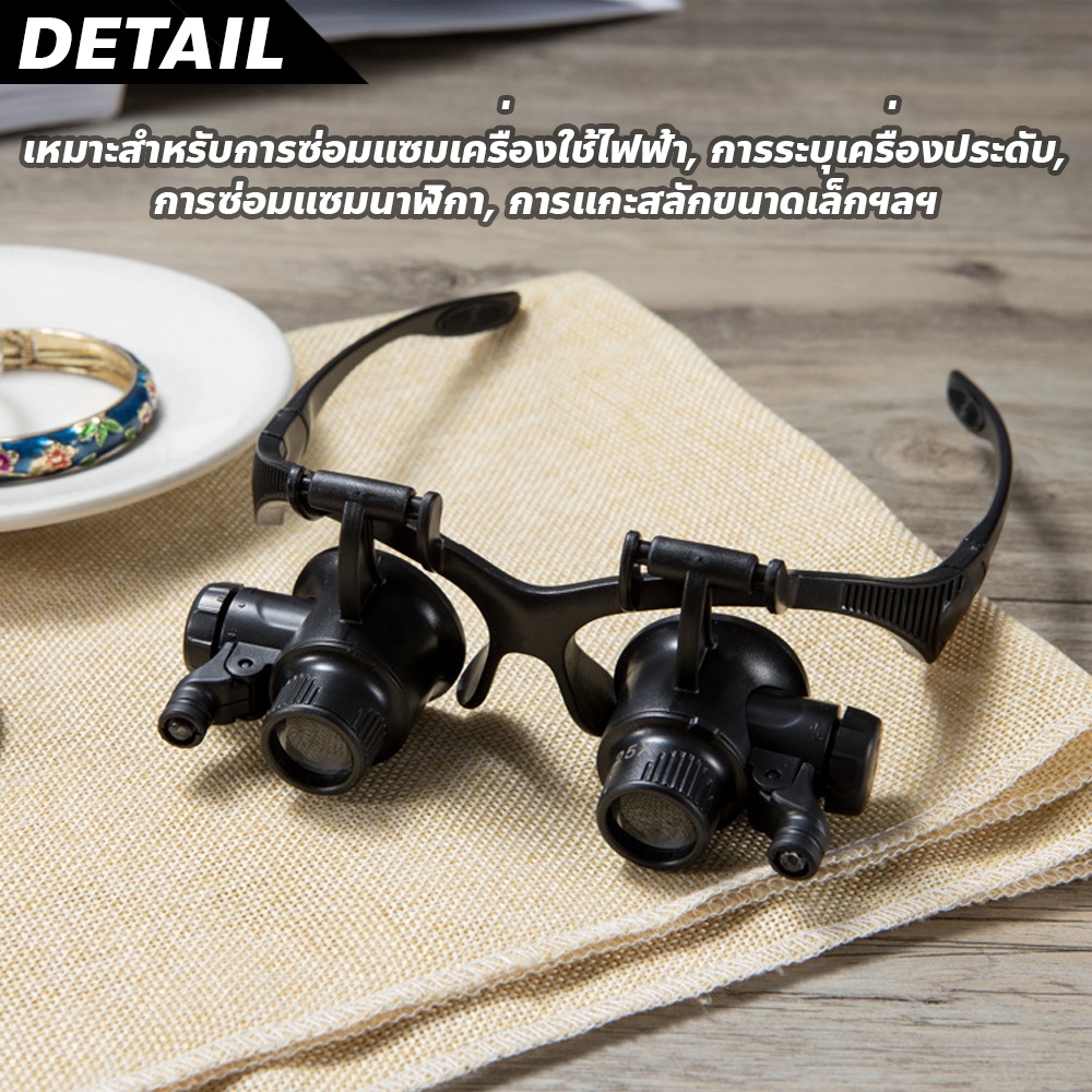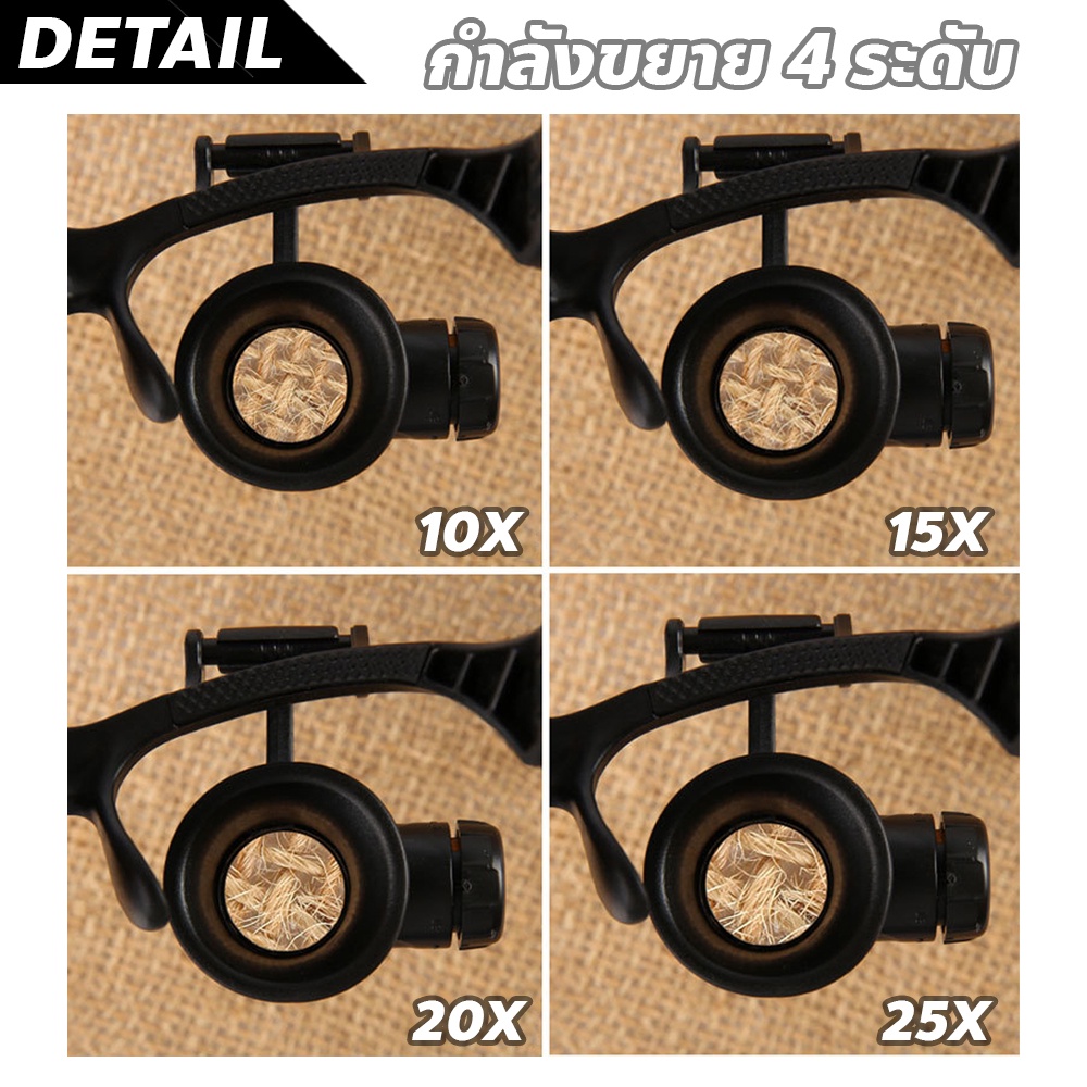 FYP แว่นขยายติดศีรษะ คุณภาพสูง เลนส์ขยายแบบมีไฟ LED แบบสวมศีรษะ น้ำหนักเบา