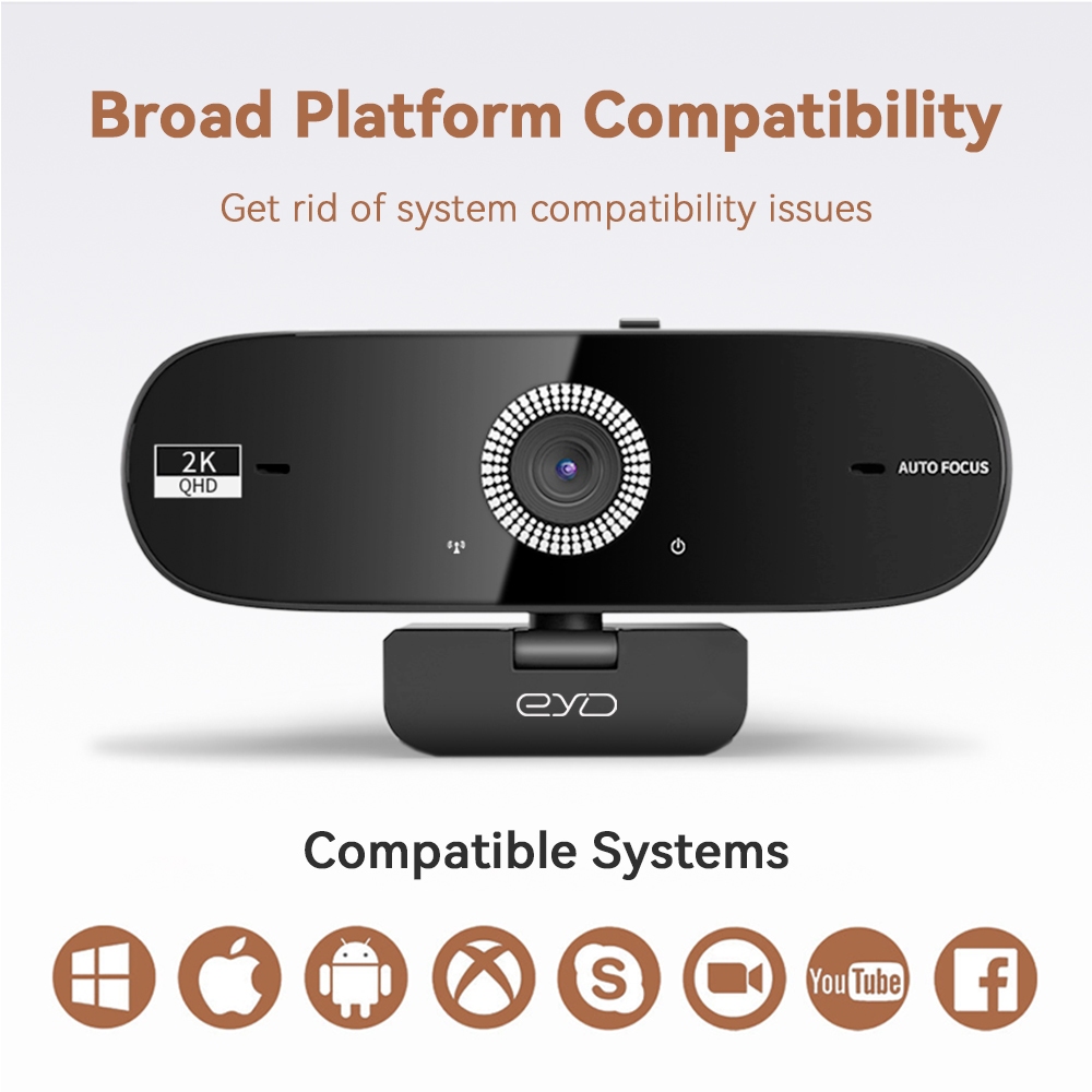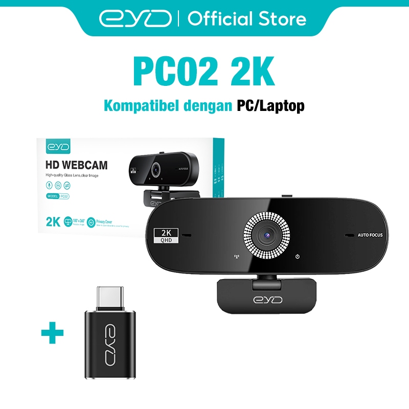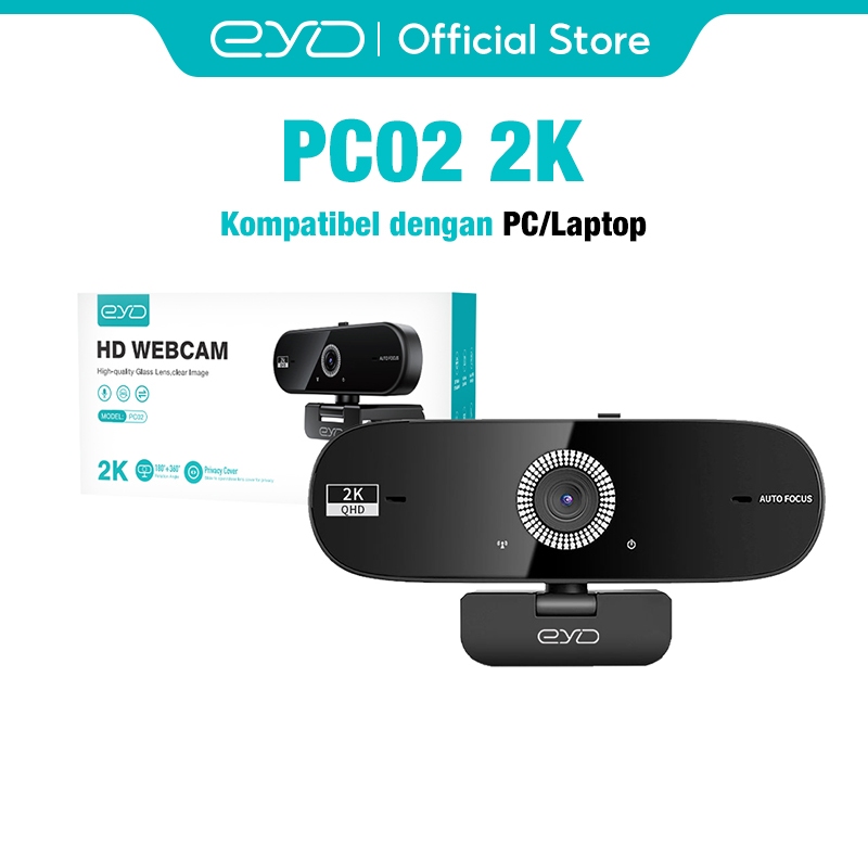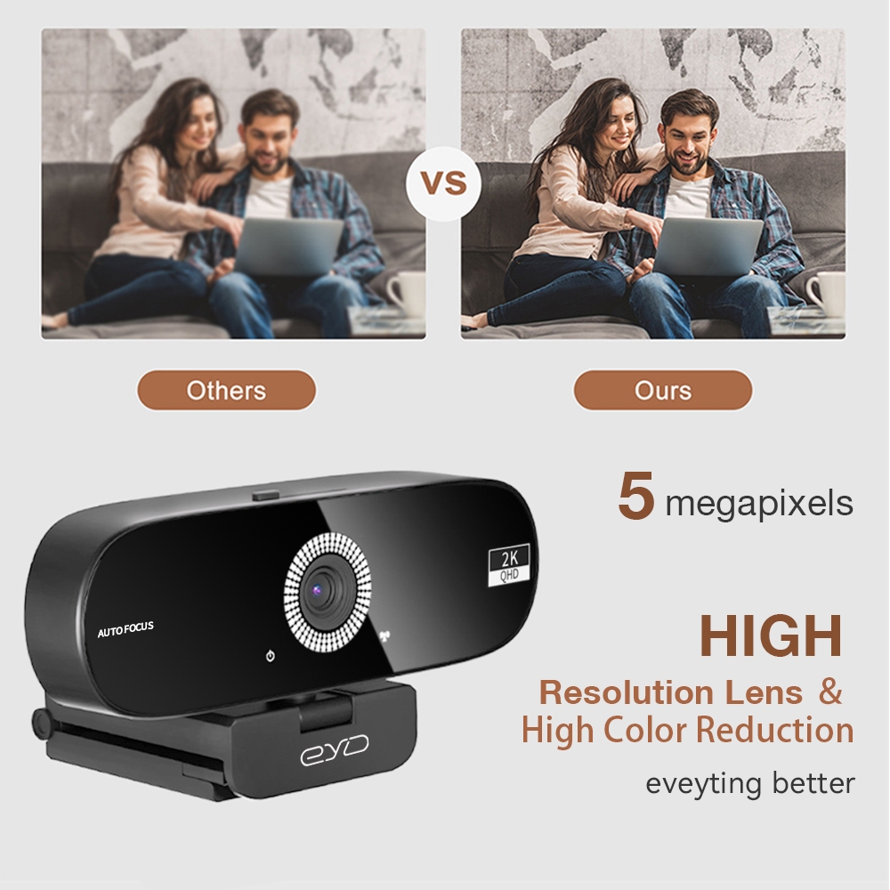 EYD เว็บแคมถ่ายทอดสด Full HD 2K โฟกัสอัตโนมัติรวดเร็ว 5MP ไมโครโฟนตัดเสียงรบกวนในตัว เว็บแคม USB แบบเสียบและใช้ง PC02