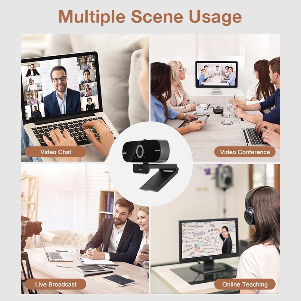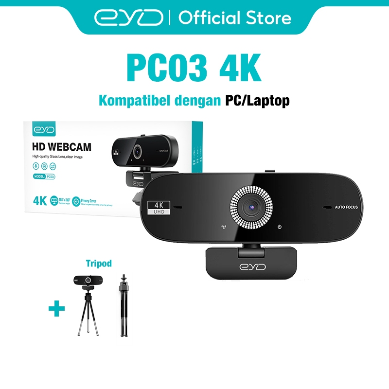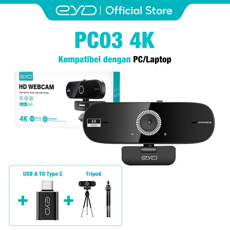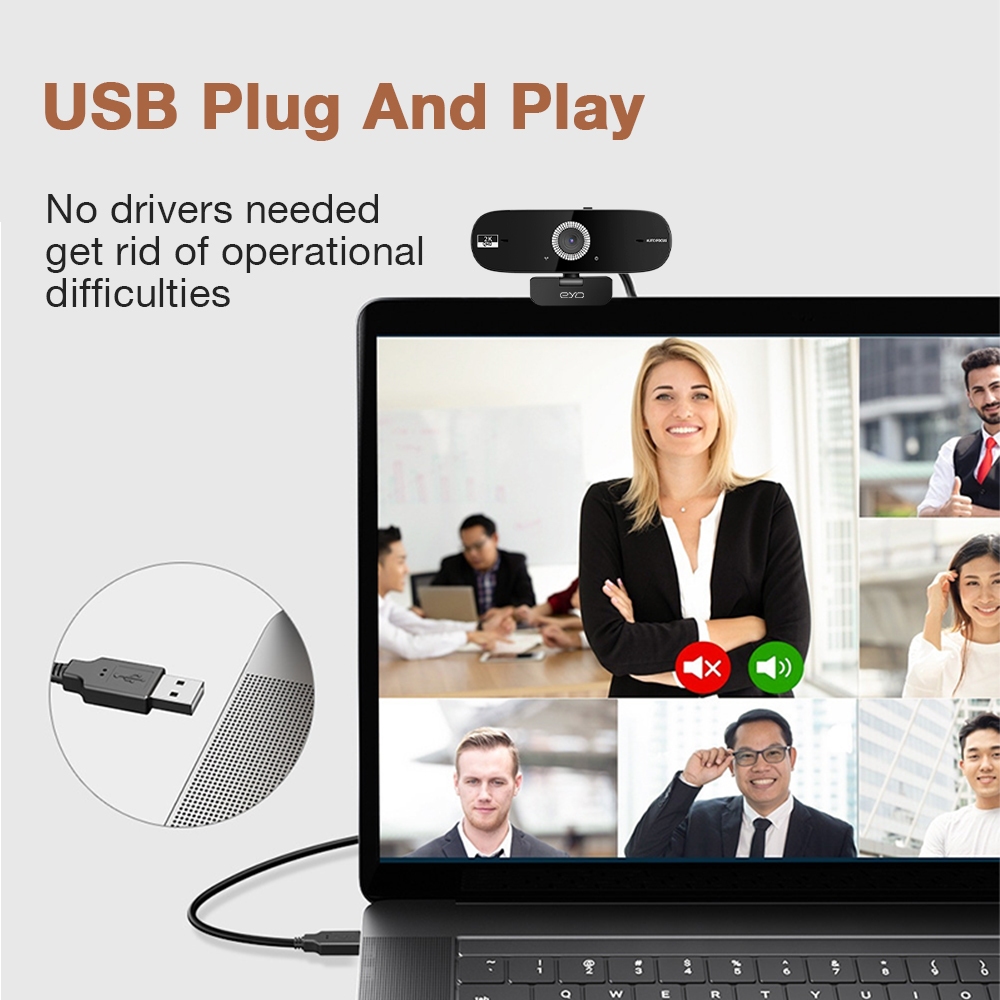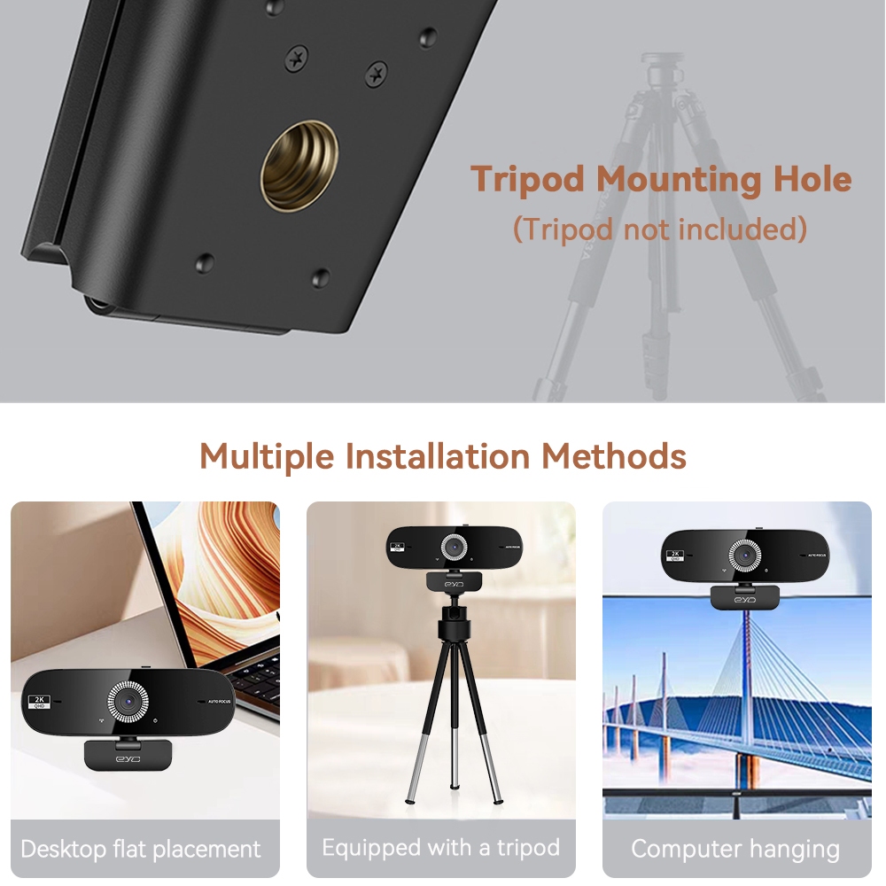 EYD เว็บแคมถ่ายทอดสด Full HD 2K โฟกัสอัตโนมัติรวดเร็ว 5MP ไมโครโฟนตัดเสียงรบกวนในตัว เว็บแคม USB แบบเสียบและใช้ง PC02
