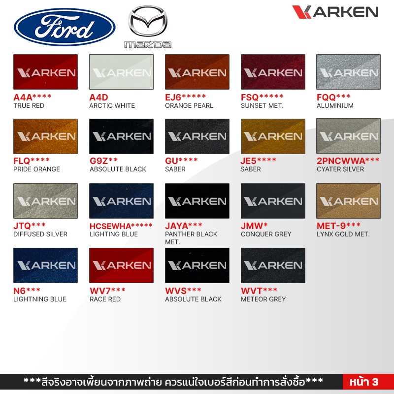 สีพ่นรถยนต์ ฟอร์ด มาสด้า Ford Mazda 2K KARKEN | ครบทุกสี ขนาด 0.5 ลิตร / 1 ลิตร สำหรับพ่นซ่อมสีรถ