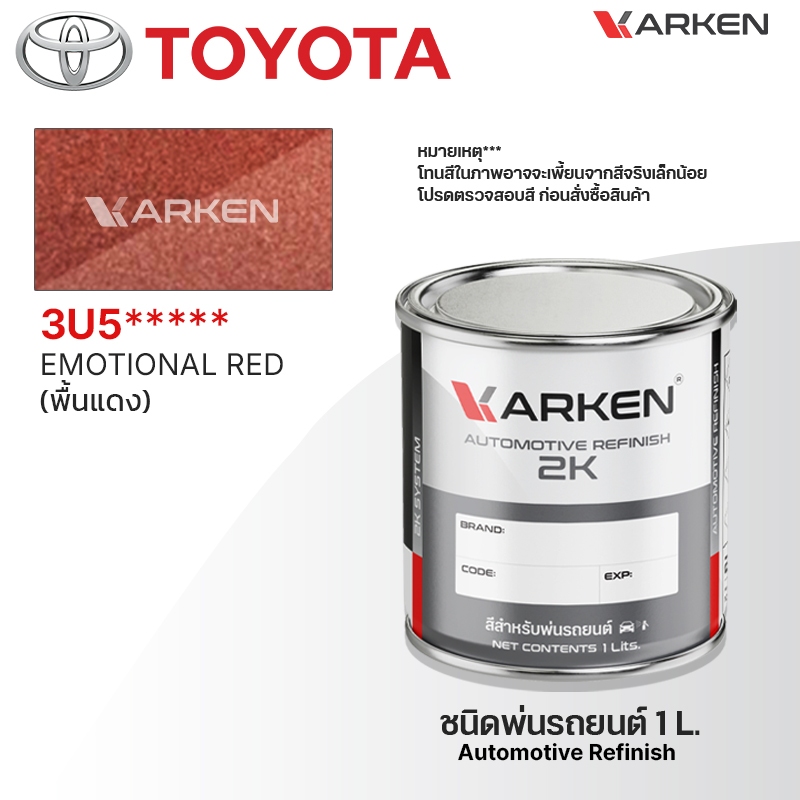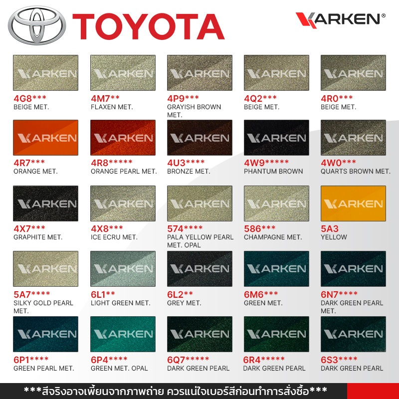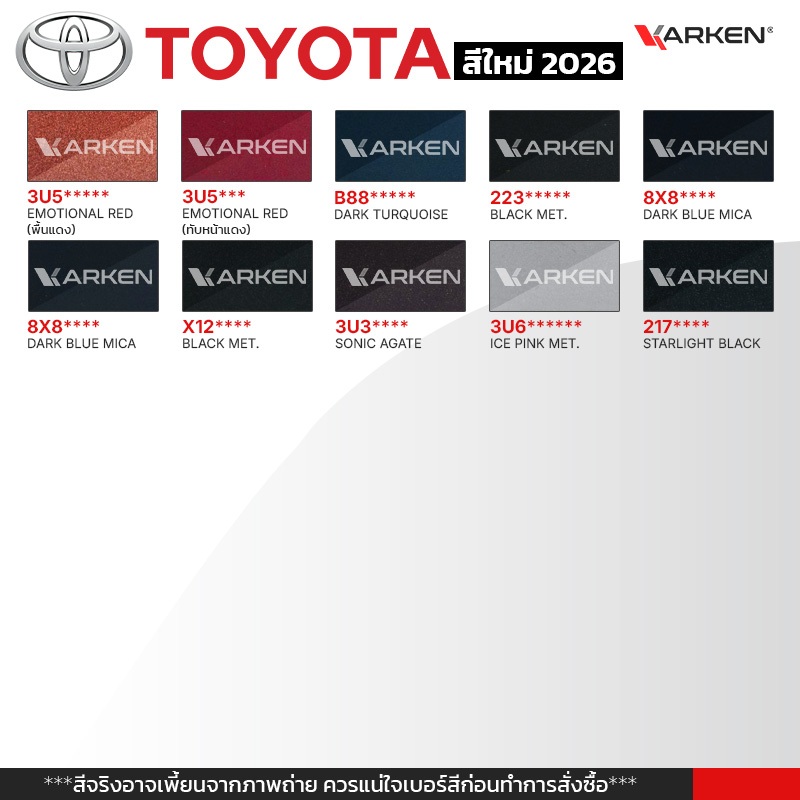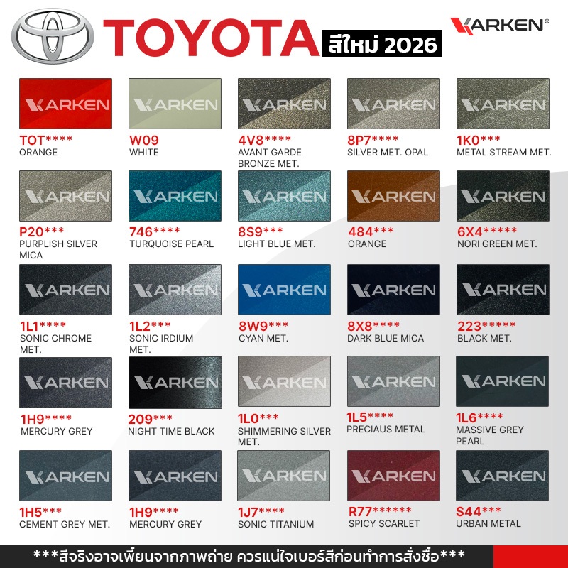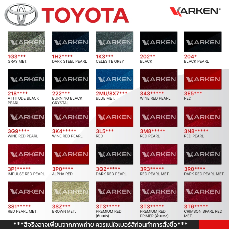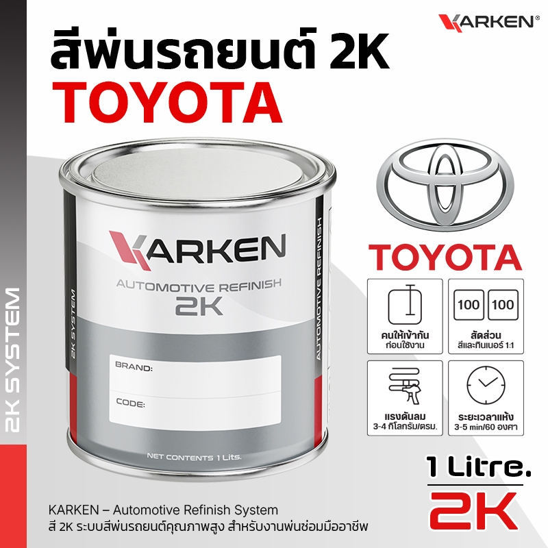 สีพ่นรถยนต์ โตโยต้า Toyota 2K KARKEN | ครบทุกสีศูนย์ ขนาด 0.5 ลิตร / 1 ลิตร สำหรับพ่นซ่อมสีรถ