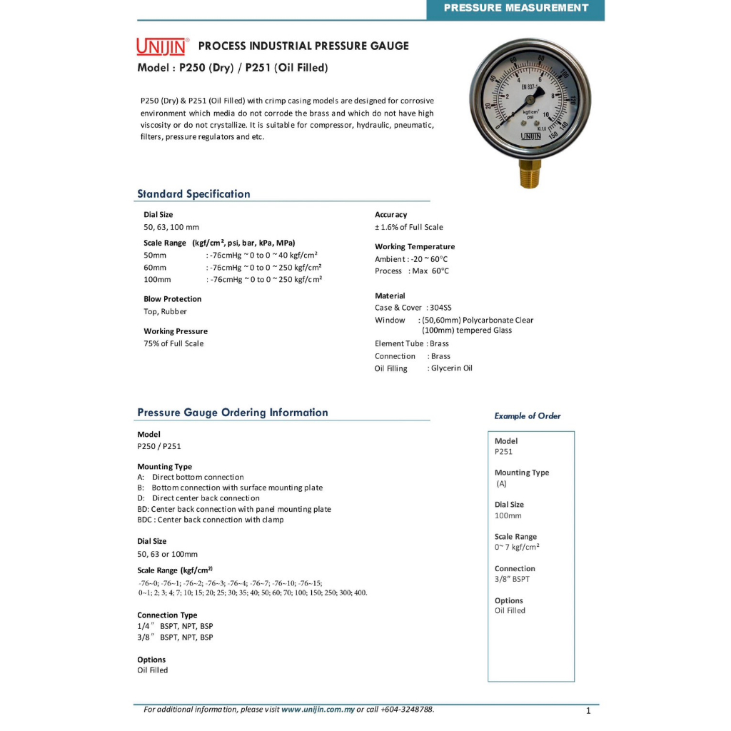 Pressure gauge เกจแรงดัน 0 - 10 Bar / 150 Psi