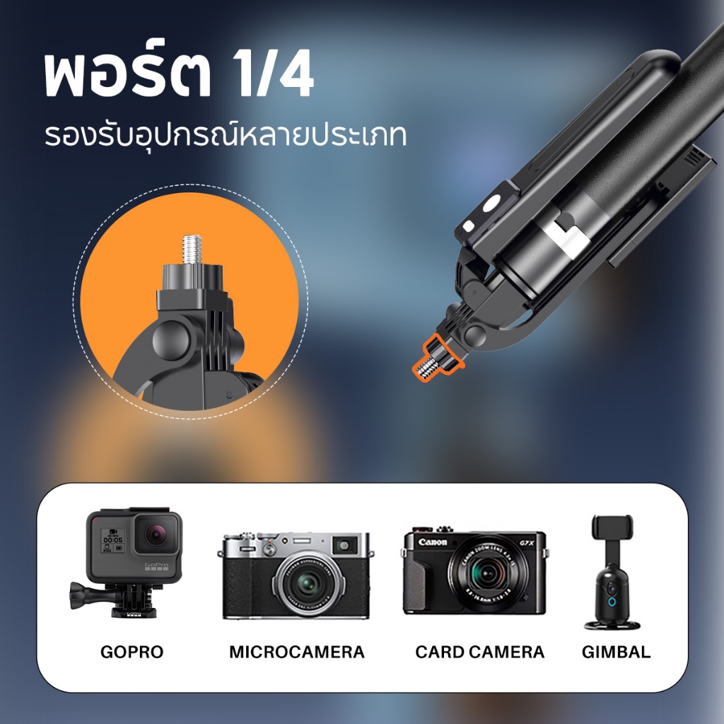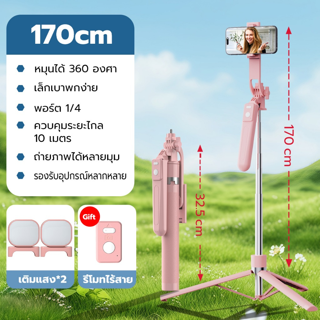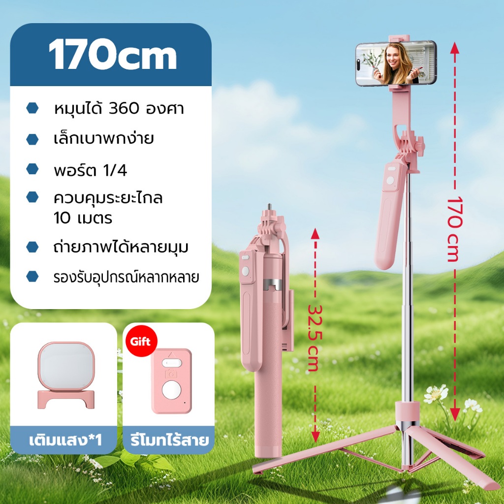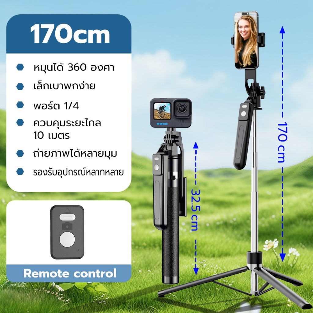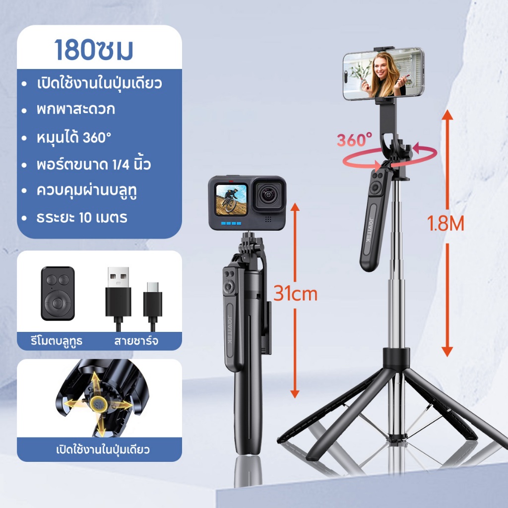 JQVITEK ขาตั้งกล้องเซลฟี่แบบขาตั้งกล้องอเนกประสงค์ 1.7เมตร หมุนได้ 360° พร้อมรีโมทบลูทูธ LED กล้องภายนอกแบบ Gimbal TR13S
