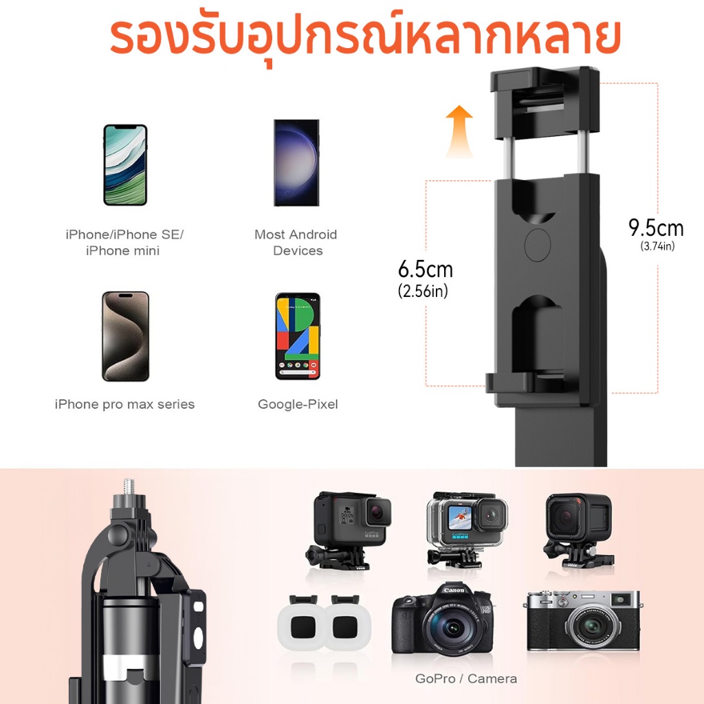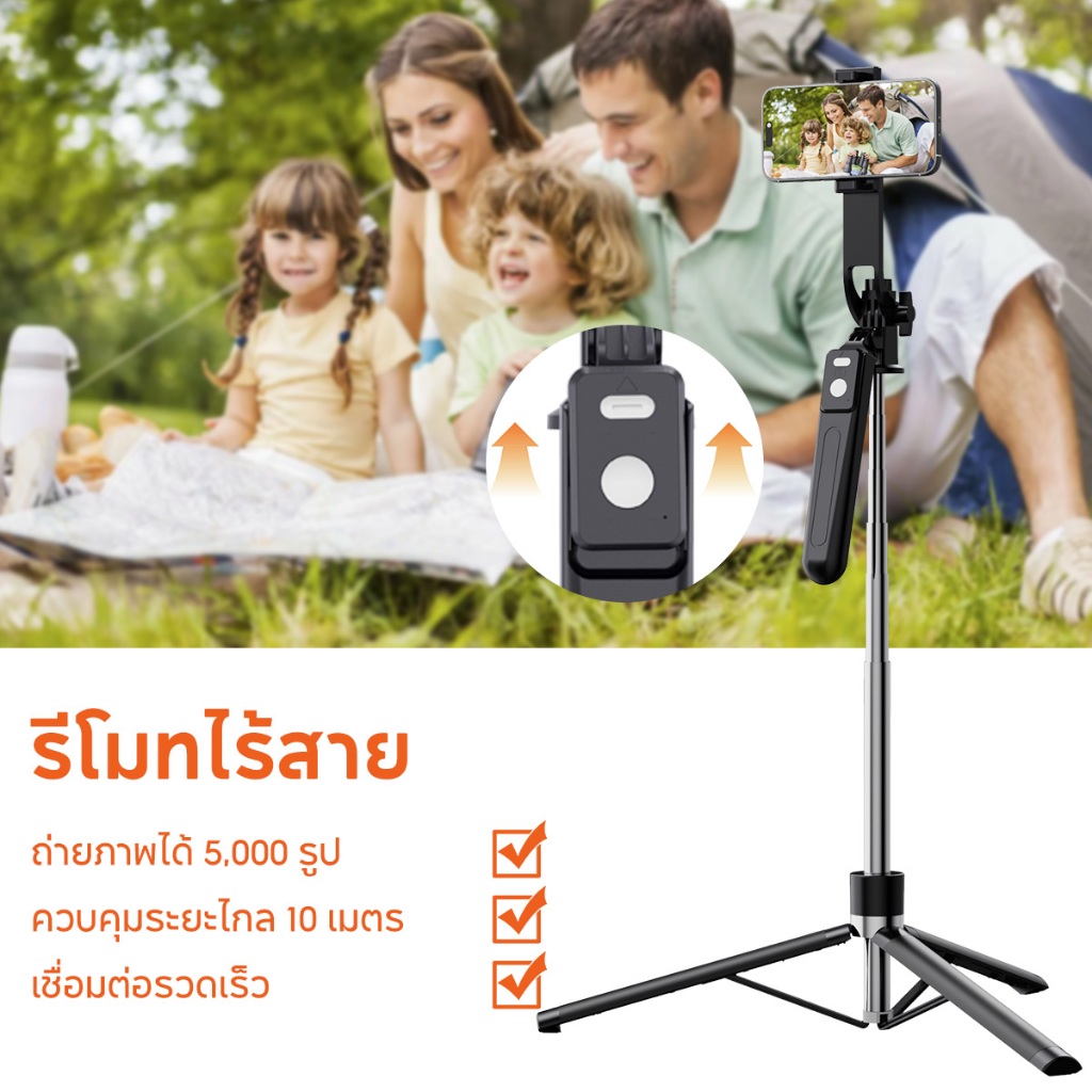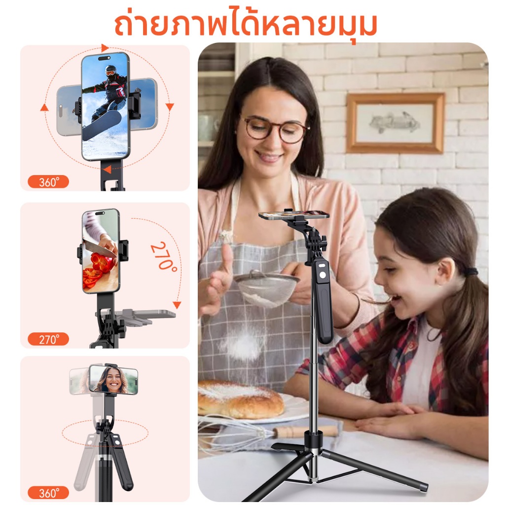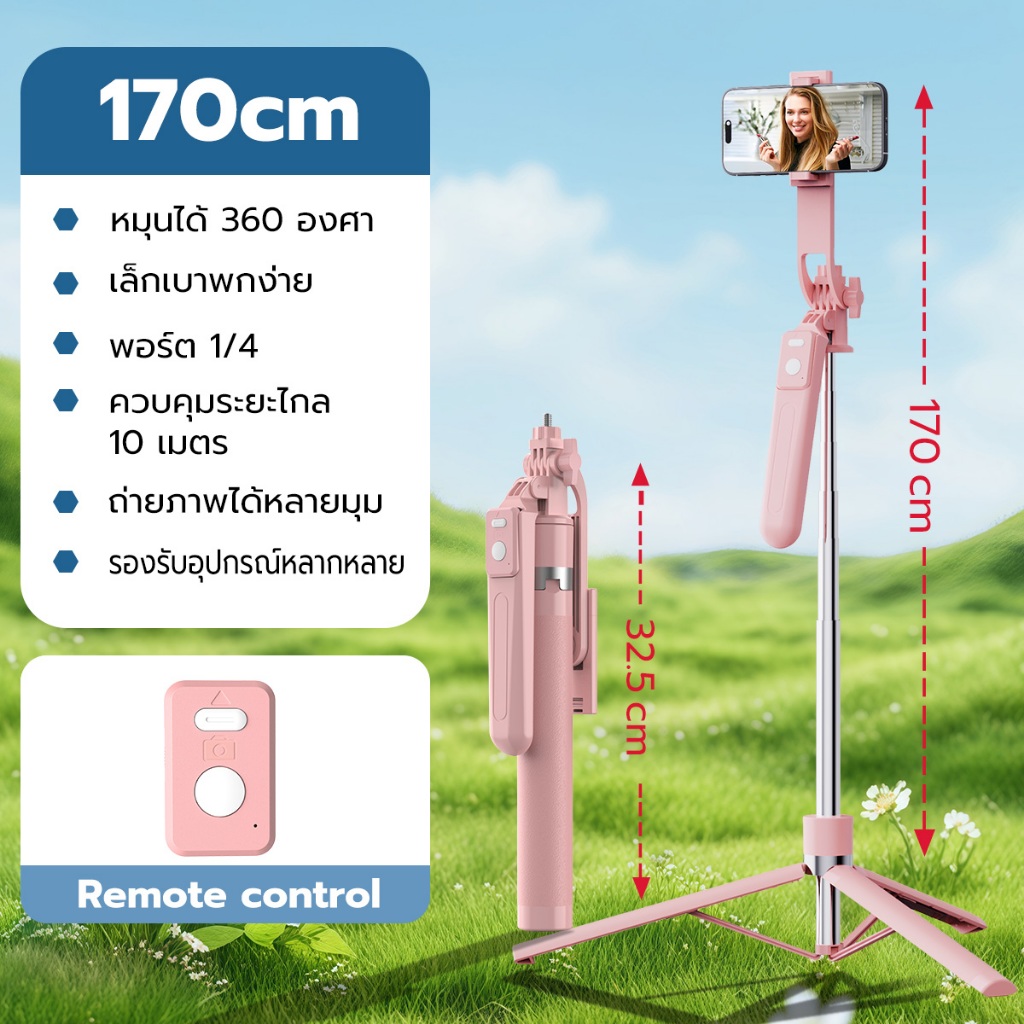 JQVITEK ขาตั้งกล้องเซลฟี่แบบขาตั้งกล้องอเนกประสงค์ 1.7เมตร หมุนได้ 360° พร้อมรีโมทบลูทูธ LED กล้องภายนอกแบบ Gimbal TR13S