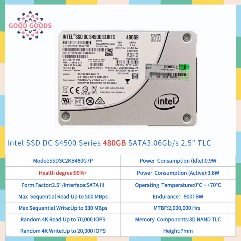 Intel DC S4500 240GB 480GB 3D NAND TLC Solid State Drive (SSD)- 2.5 "ภายใน - Sata 6Gb/s SSDSC2KB480G7