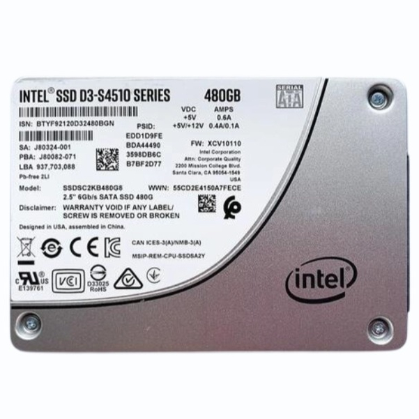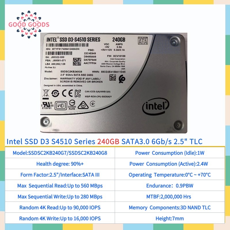 Intel D3 S4510 240GB 480GB 2.5 "Sata 6Gb/s ไดรฟ์ Solid State ภายใน SSDSC2KB480G7